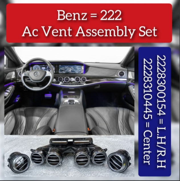 Efficiently control the air flow in your Mercedes-Benz 222 E Class W222 with our AC Vent Assembly Set. This set includes a left vent assembly (2228300154) and center vent assembly (2228310), both fully compatible and used by Mercedes-Benz. Improve your driving experience with precise control of air distribution.
