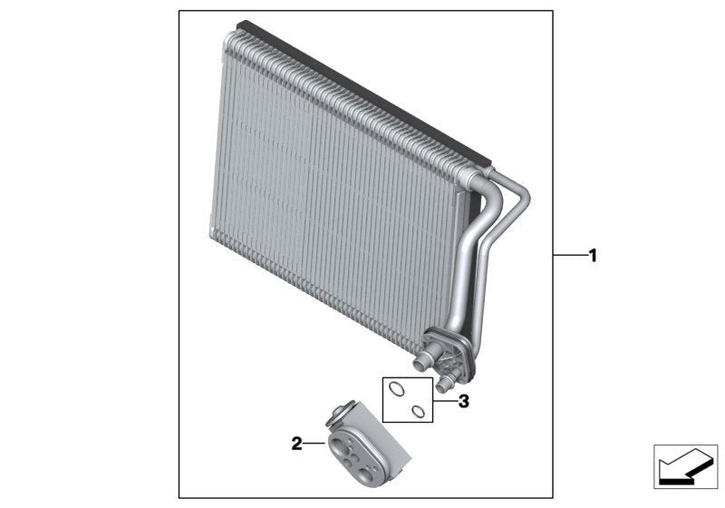 This Air Conditioning Evaporator (Cooling Coil) is compatible with BMW Series 3 (F30, F80) and Series 3 Gran Turismo (F34). It efficiently cools the air in your car, providing a comfortable driving experience even in warm weather. Keep your BMW's air conditioning system running smoothly with this high-quality replacement part.