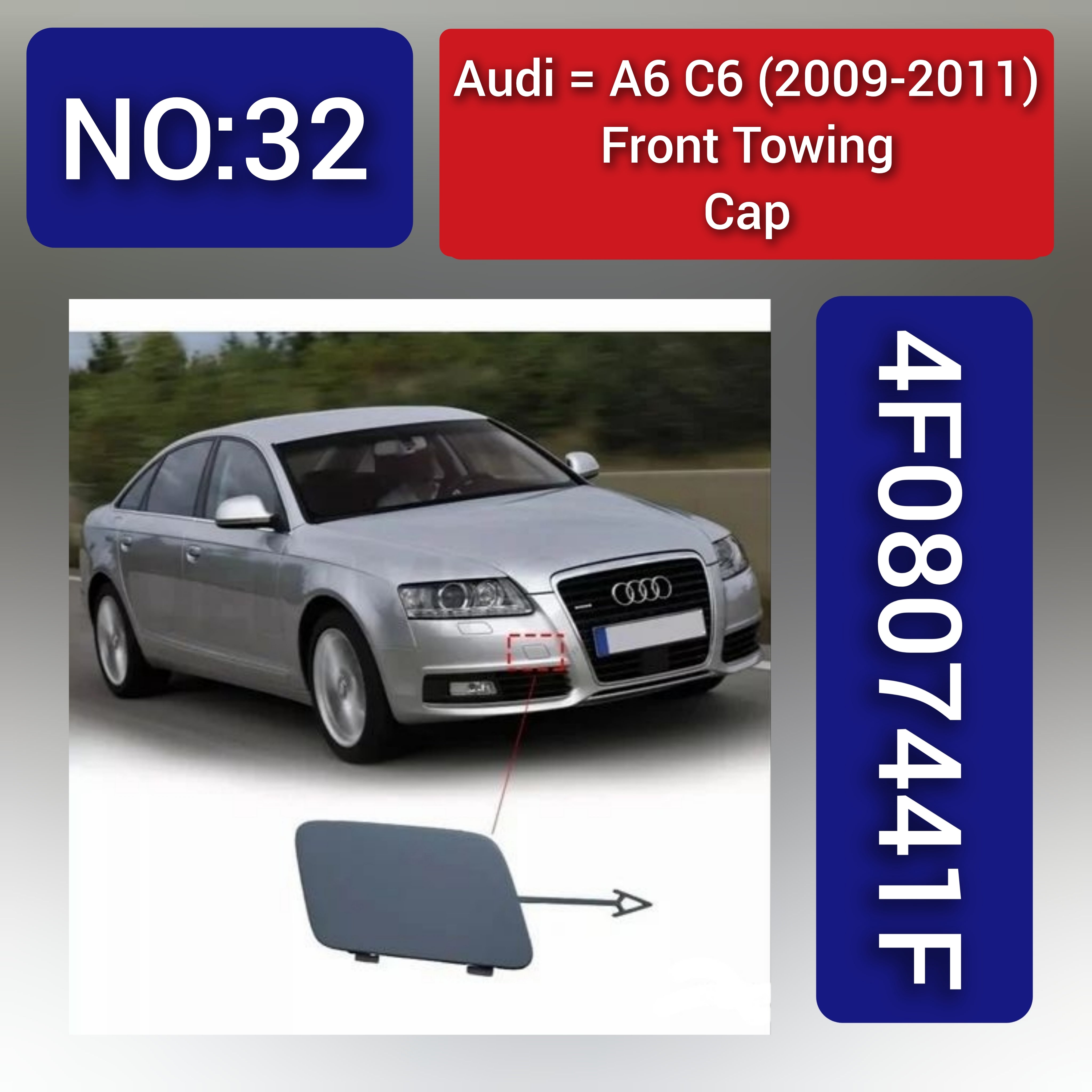 Audi A6 C6 (2009–2011) Front Towing Cap, Ref No. 4F0807441F: Part Number: 4F0807441F Compatibility: Designed to fit...