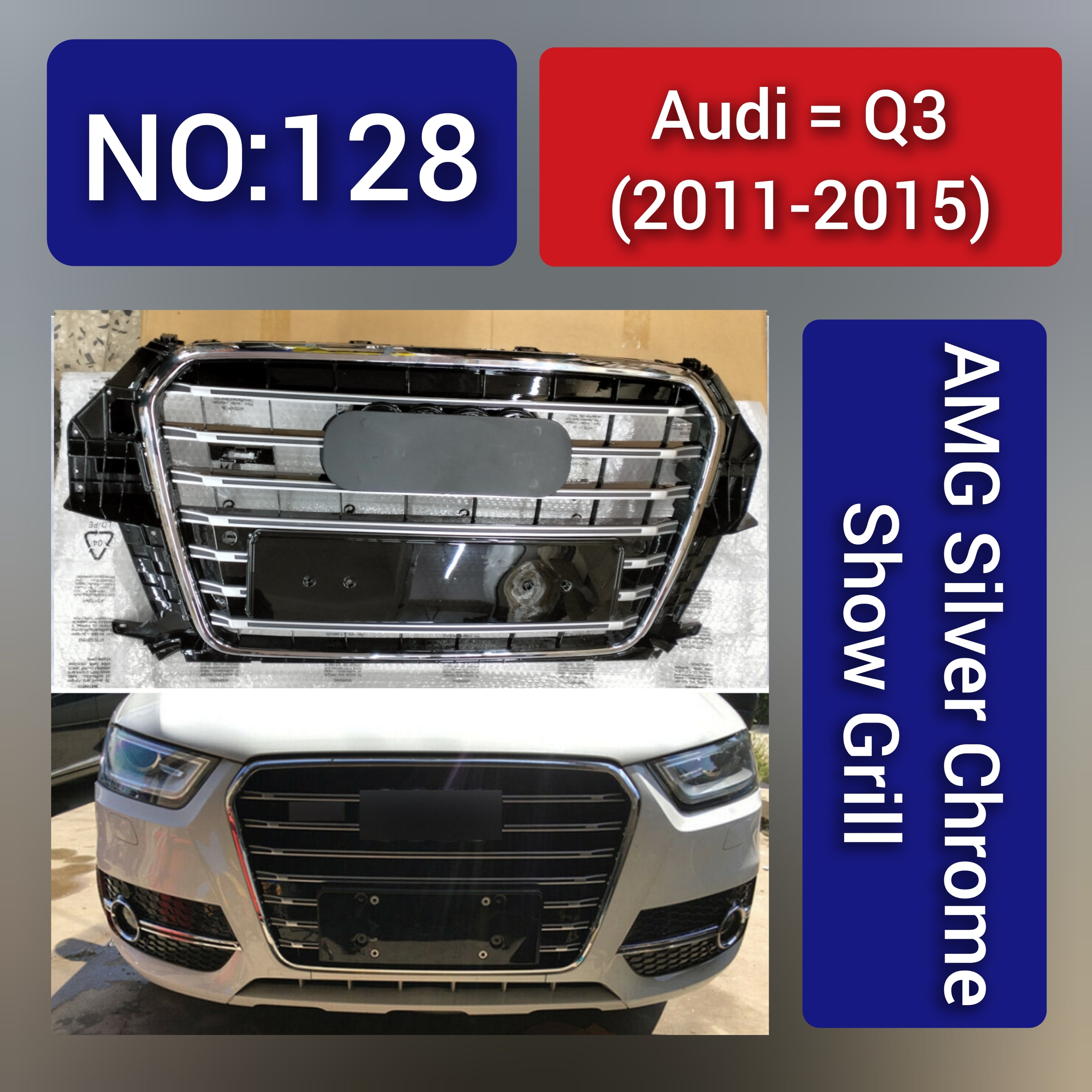The Audi Q3 (2011-15) AMG Silver Chrome Show Grill is a custom-designed grille enhancement for the Audi...