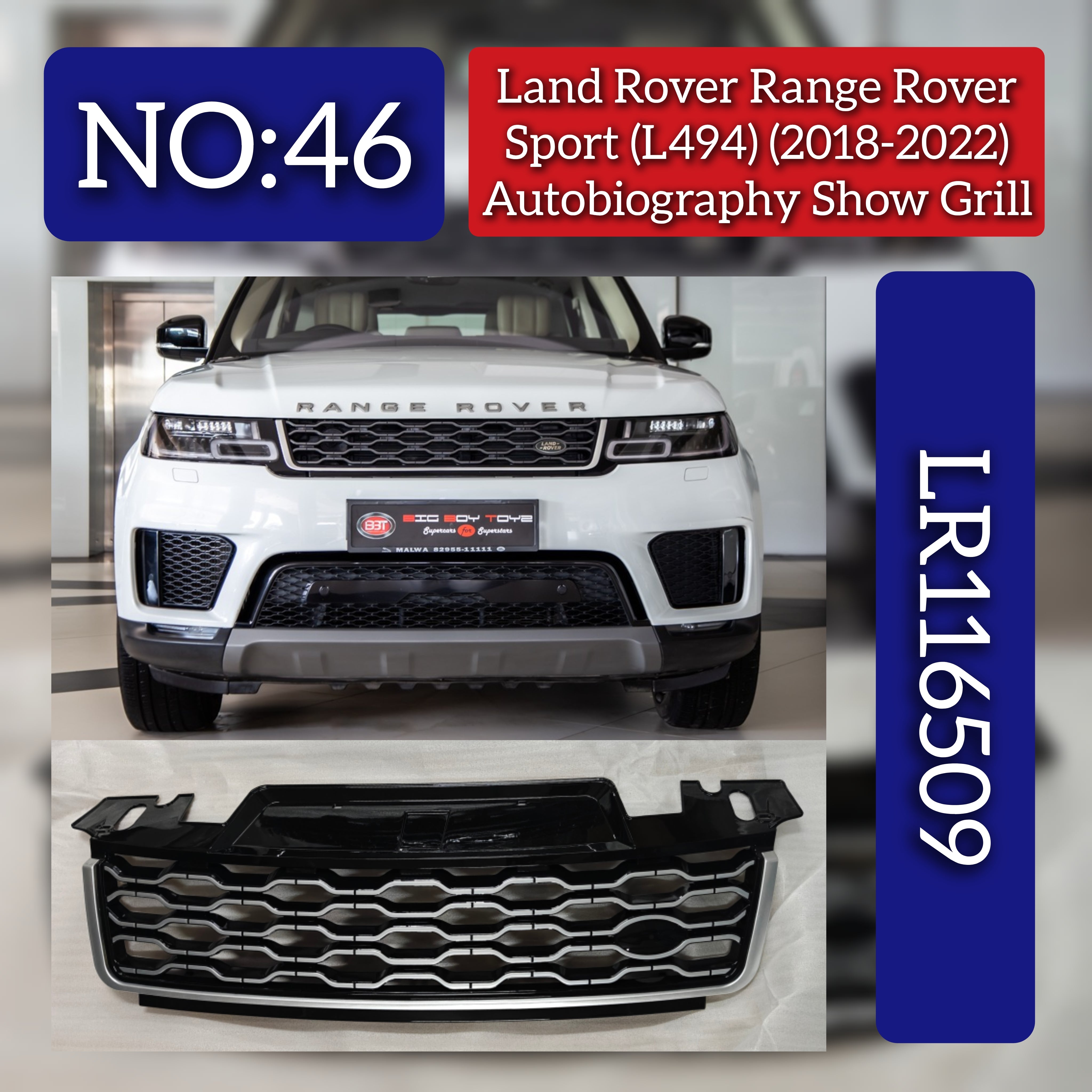 The Autobiography Show Grill LR116509 is designed specifically for the Range Rover Sport L494 models from 2018 to 2022. This high-quality replacement grill ensures a perfect fit and maintains the vehicle’s original aesthetic appeal. Crafted to meet OEM standards, it offers durability and enhances the front-end appearance, making it an ideal choice for restoring or upgrading your Range Rover Sport. Tag No.46 confirms its precise compatibility and authenticity.