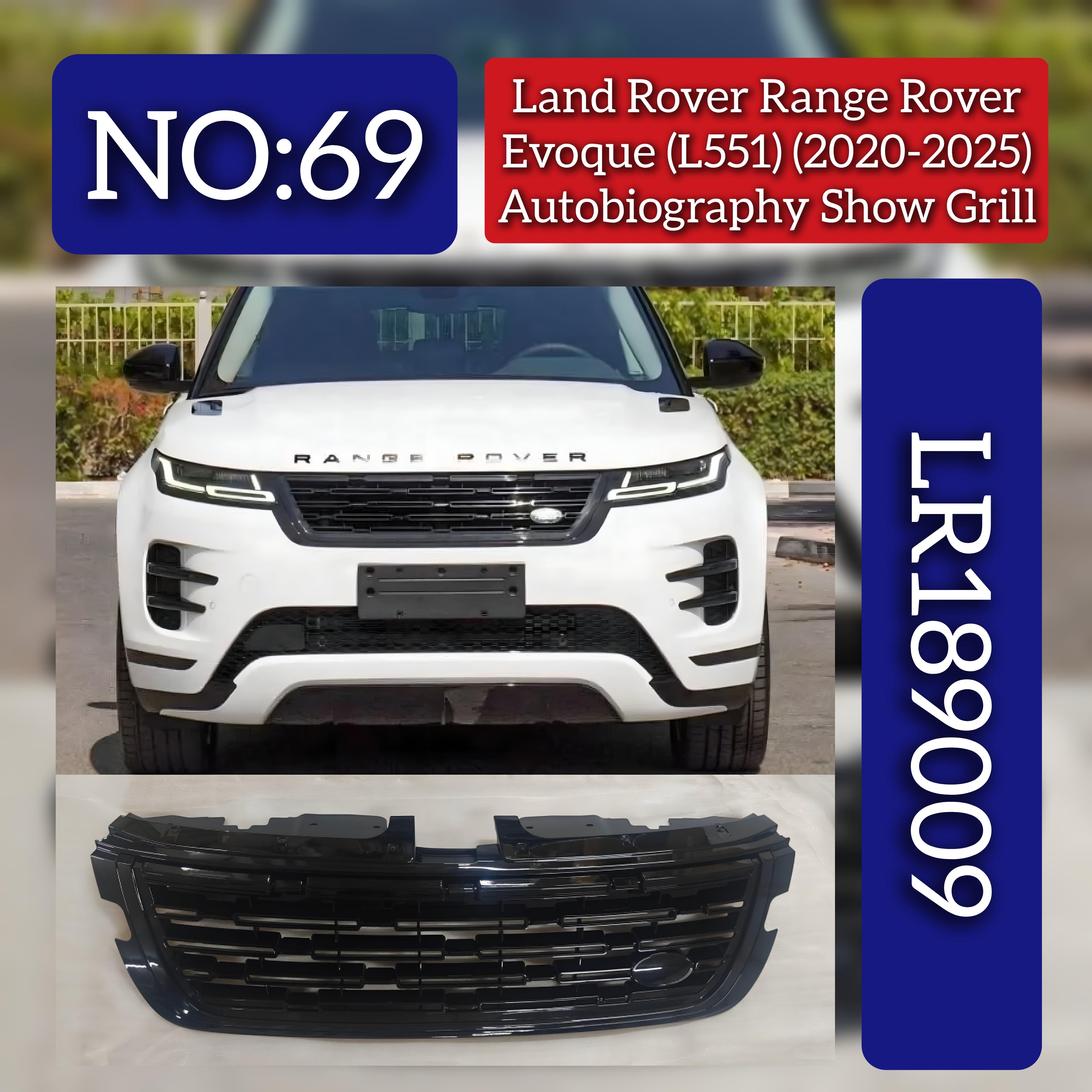 Upgrade your Range Rover Evoque L551 (2020-2025) with this authentic Autobiography Show Grill (LR189009). Engineered to OEM specifications, this premium front grille delivers the distinctive Autobiography styling that enhances your vehicle's commanding presence. Built with precision-fit design, it integrates seamlessly with your Evoque's front fascia for a factory-finished appearance. The robust construction ensures durability against road conditions while maintaining the luxury aesthetic Range Rover owners demand. Perfect for those seeking genuine Land Rover components that combine performance-grade quality with refined design. Tag No.69 for easy identification and fitment verification.