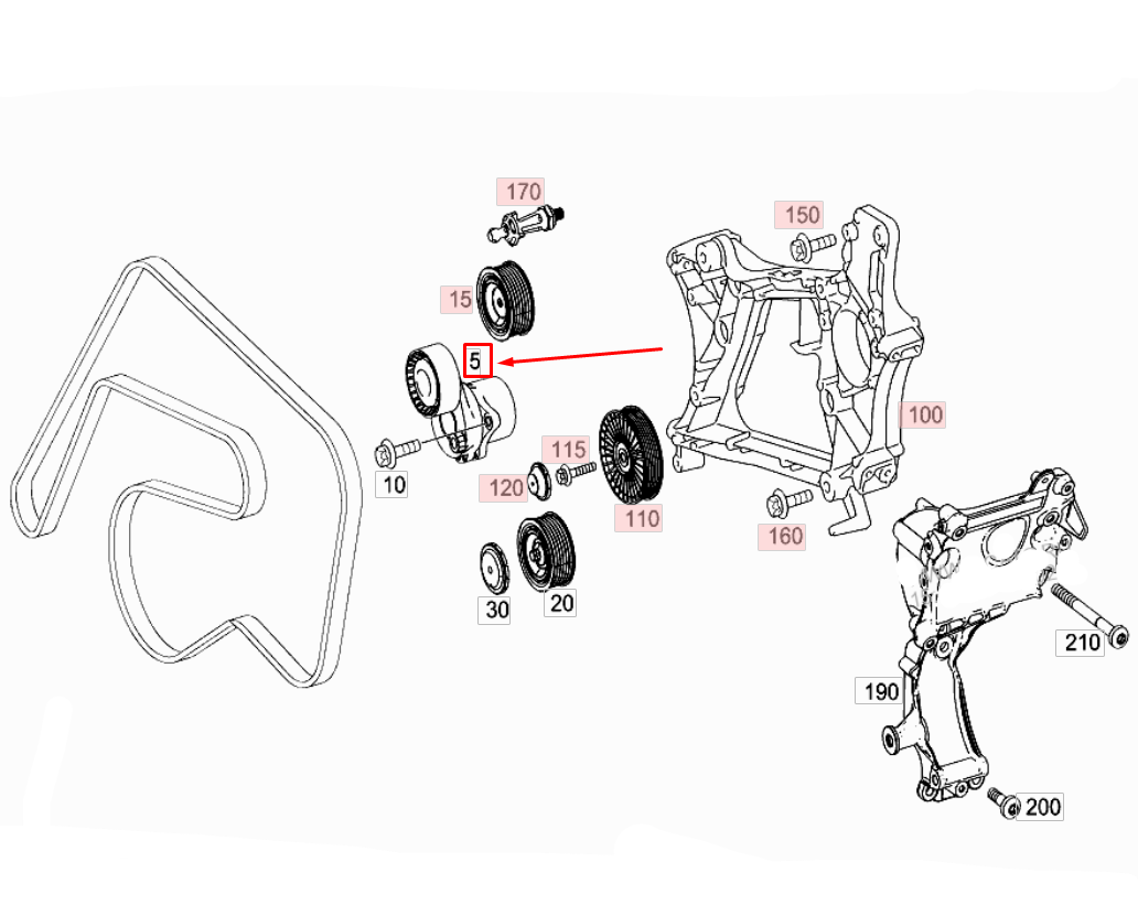 This belt tensioner with pulley is compatible with MERCEDES-BENZ C-CLASS (W205) and GLC (X253) models, including 6512002270, 6512002470, and 6512002570. It ensures proper belt tension and smooth operation, increasing the longevity and efficiency of your vehicle's engine.