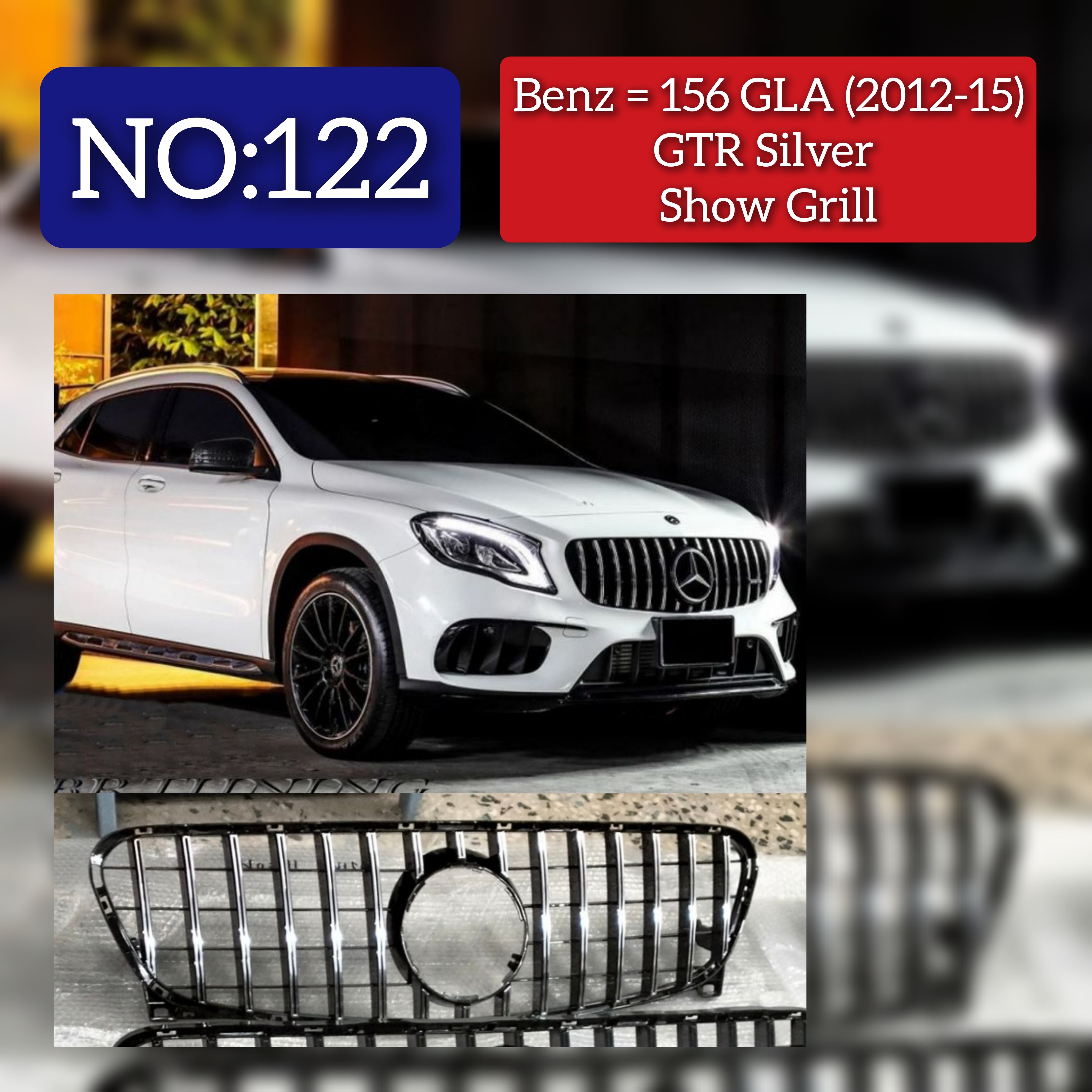 The Benz 156 GLA LCI GTR Silver Chrome Show Grill (2017-2020) offers a dynamic and stylish enhancement for compatible Mercedes-Benz GLA-Class models, particularly those with the facelift: