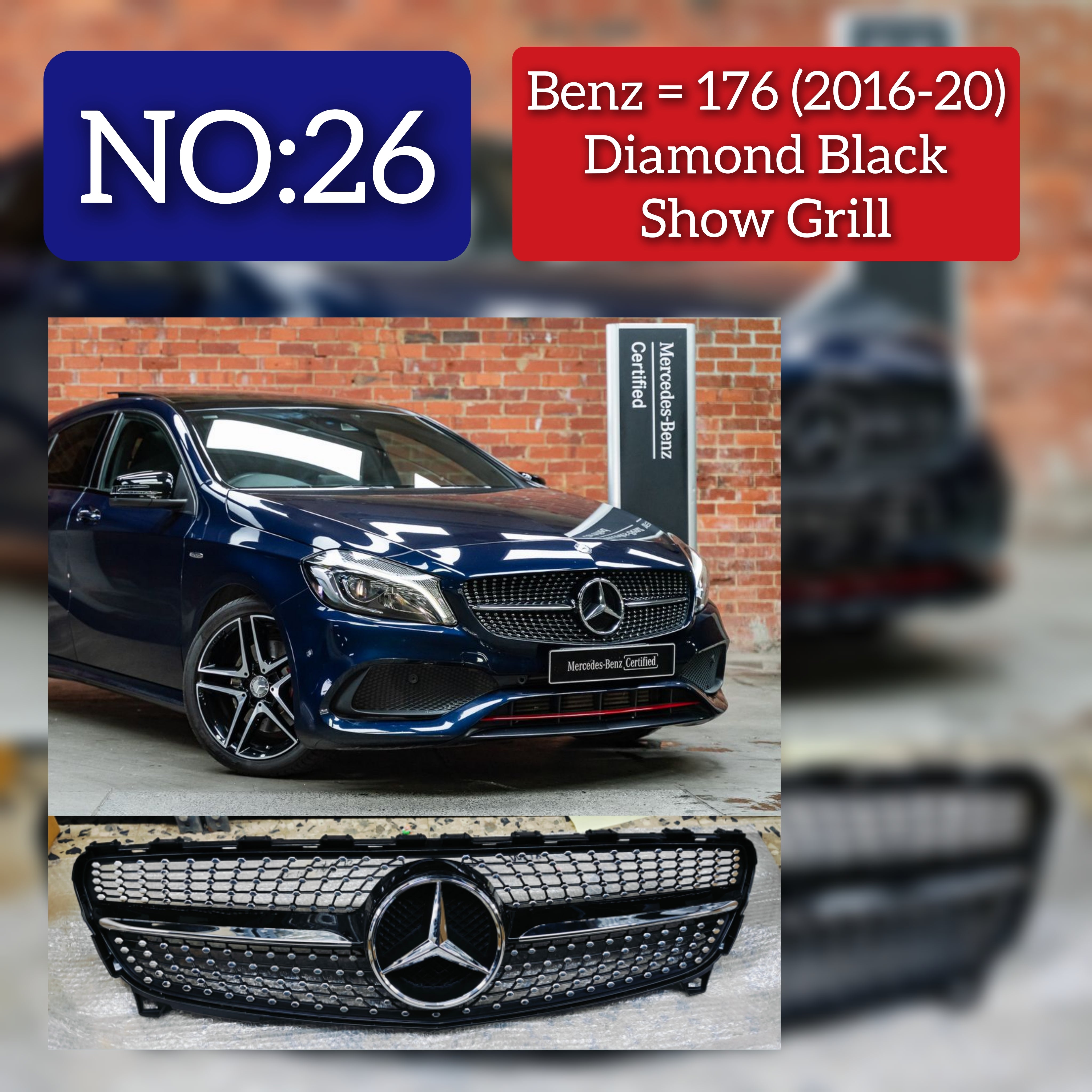 The Benz 176 A-Class Diamond Black Show Grill (2016–2019) adds a sleek and sophisticated touch to compatible Mercedes-Benz A-Class models: