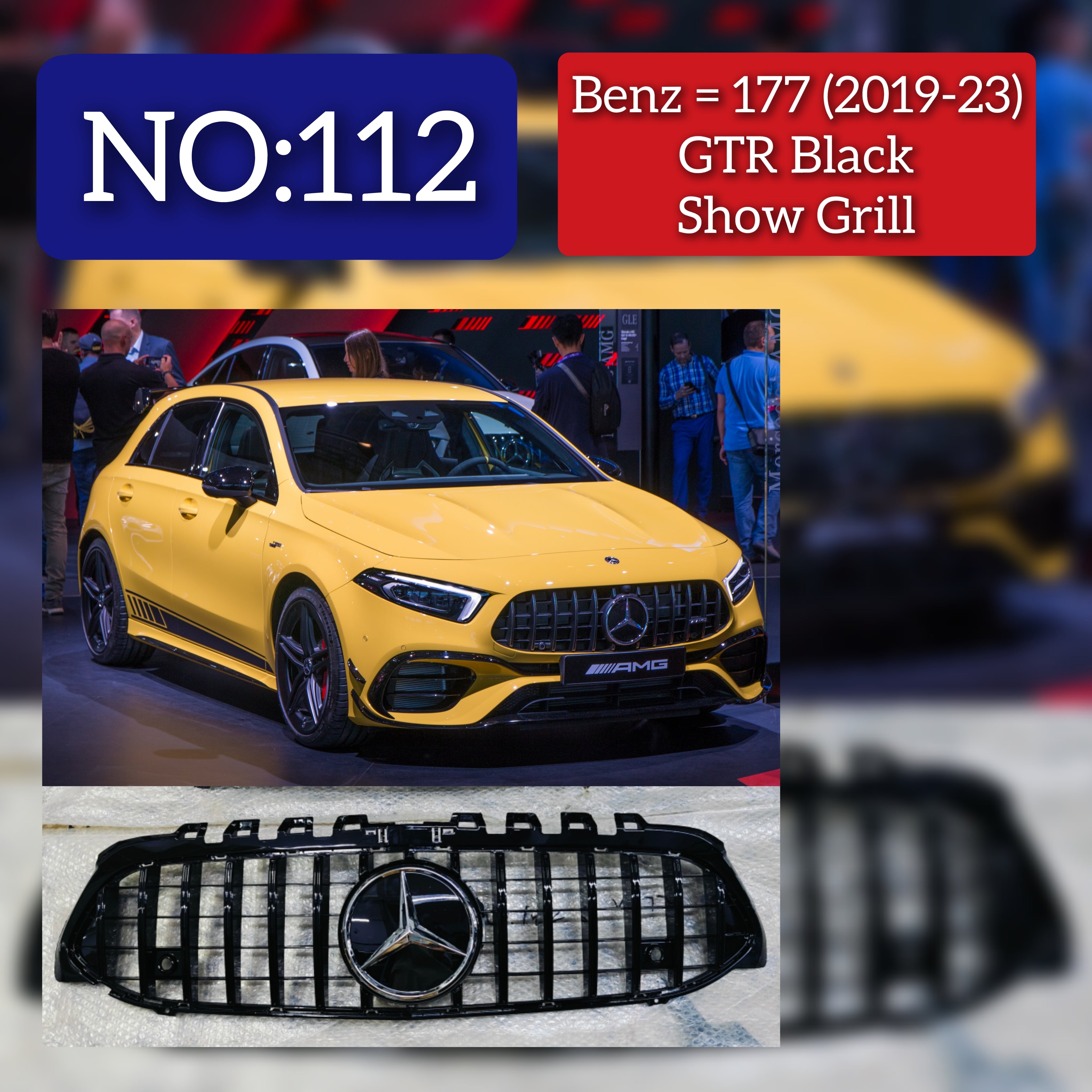 The Benz 177 GTR Black Chrome Show Grill (2019-2023) offers a sleek and sporty upgrade for compatible Mercedes-Benz A-Class models:
