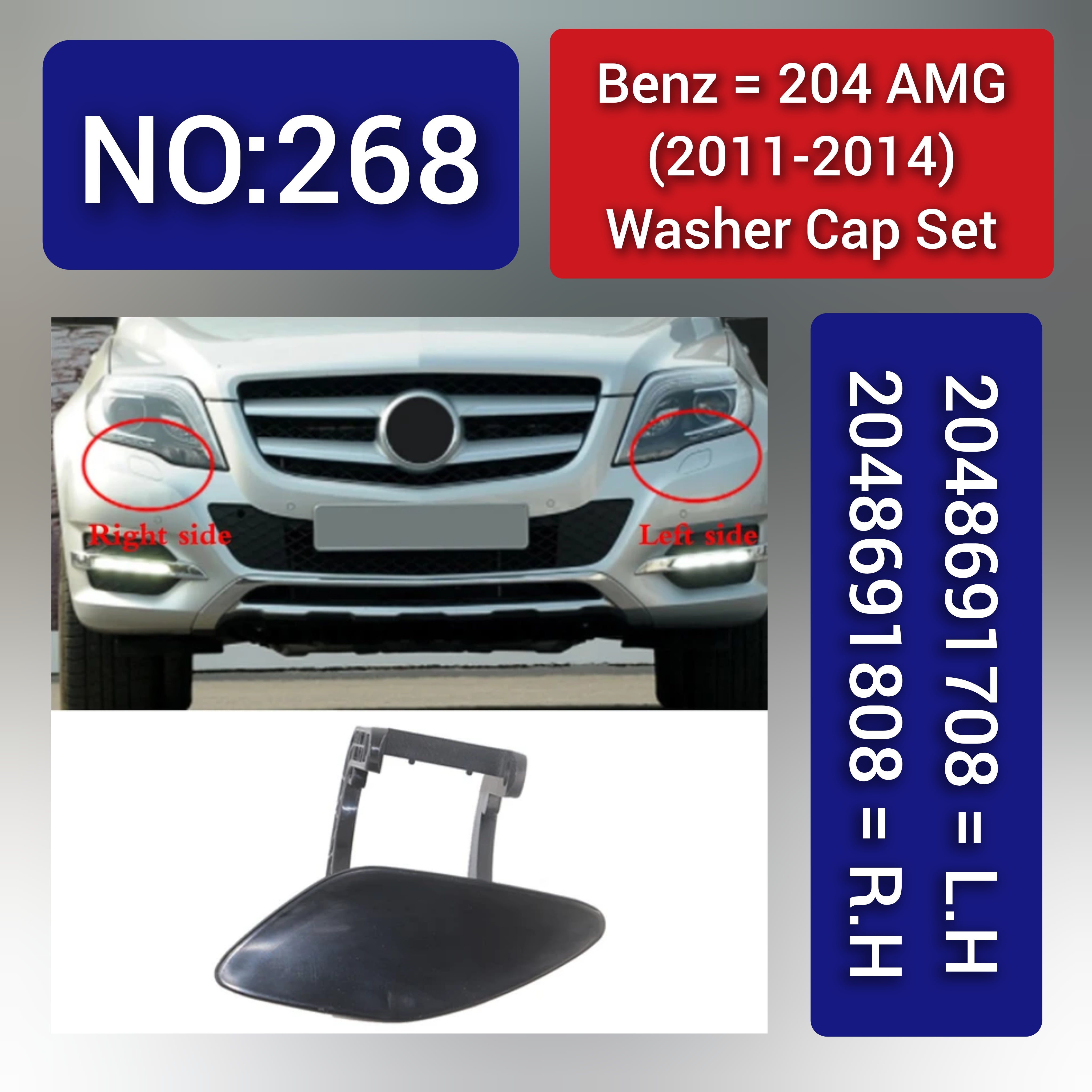 Benz 204 AMG (2011-2014) Washer Cap Set. 2048691808 = R.H 2048691708 = L.H. Tag 268