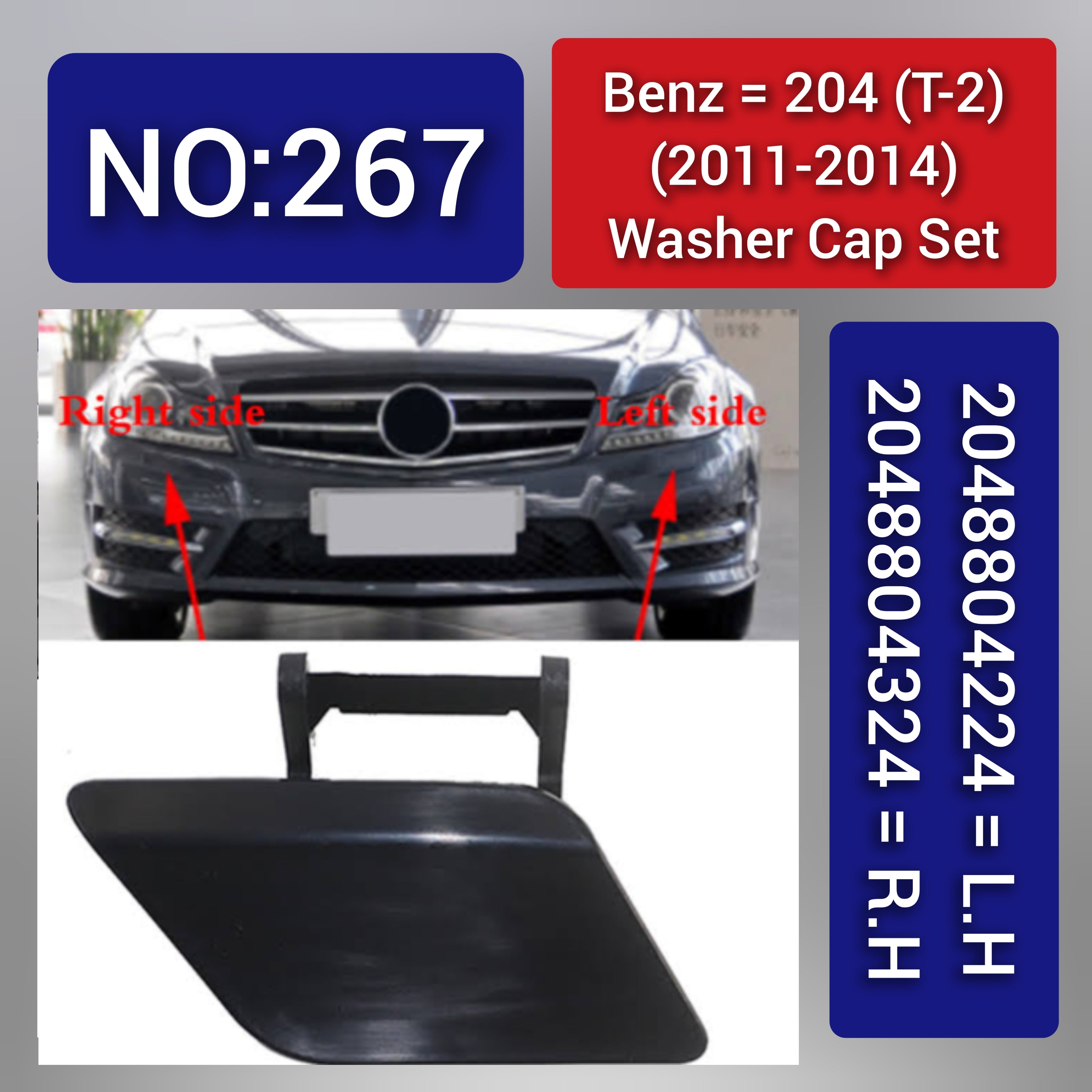 Benz 204 (T-2) (2011-2014) Washer Cap Set. 2048804324 = R.H 2048804224 = L.H. Tag 267
