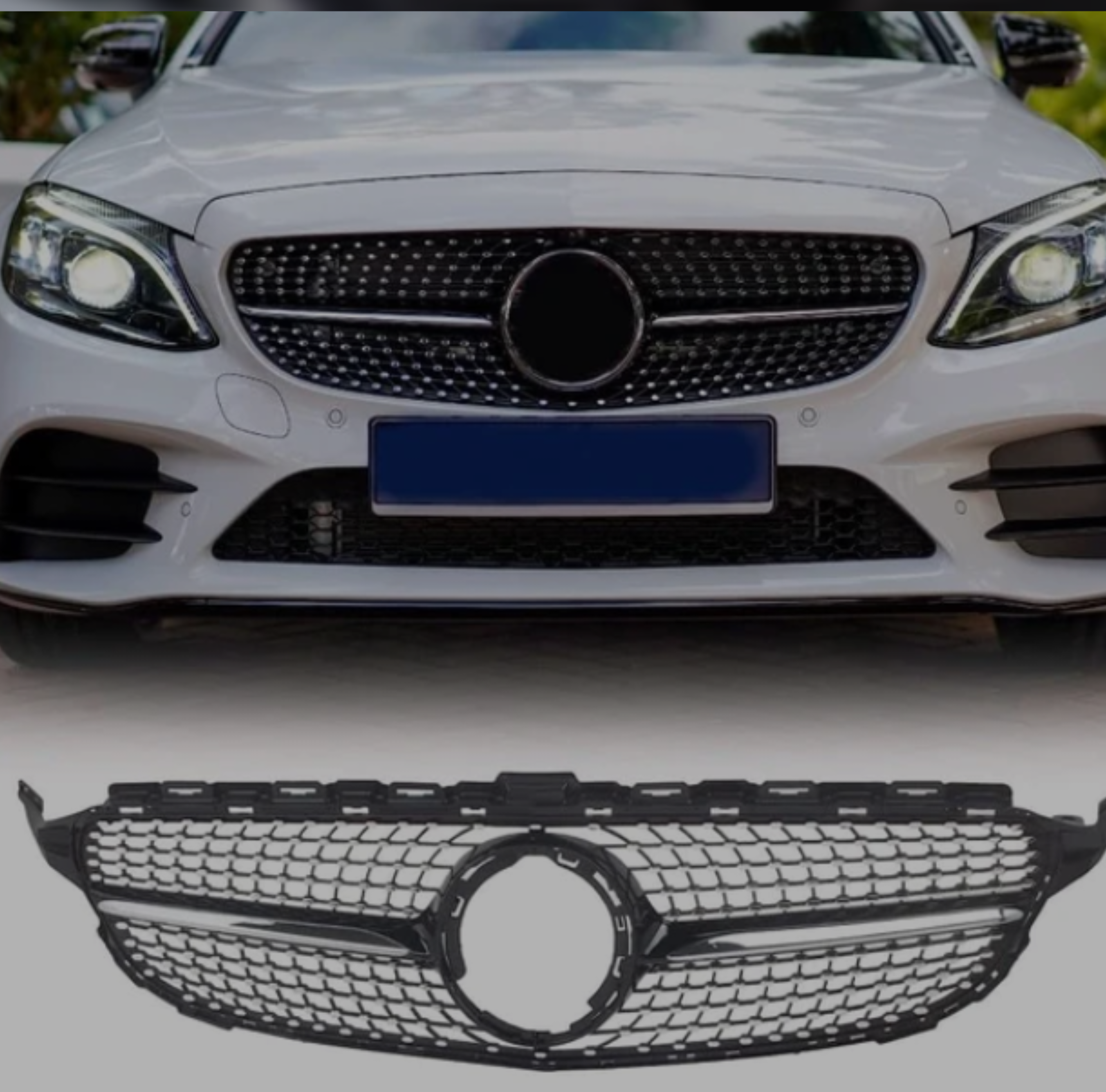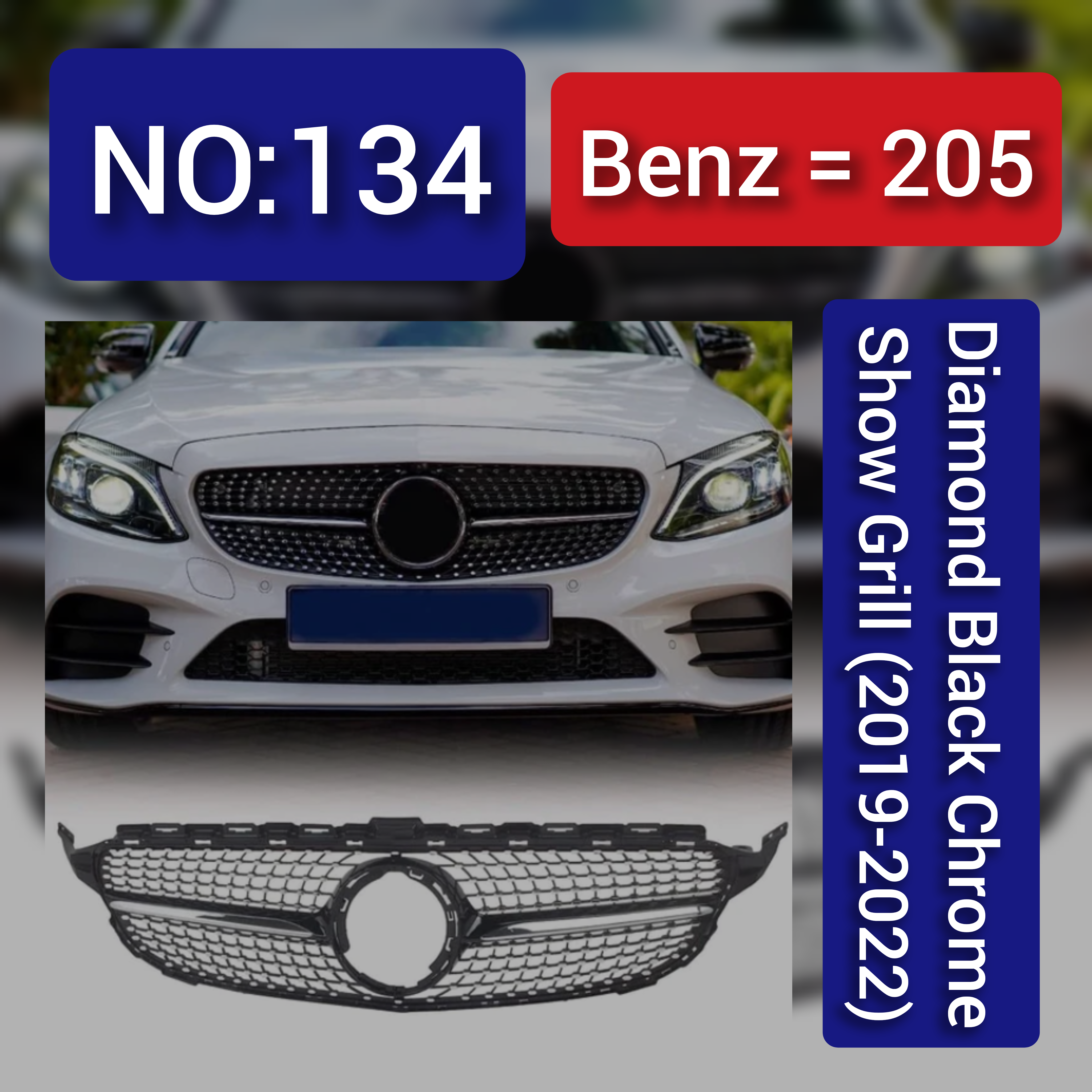 The Benz 205 Diamond Black Chrome Show Grill (2019-2022) offers a sleek and sophisticated upgrade for compatible Mercedes-Benz C-Class models: