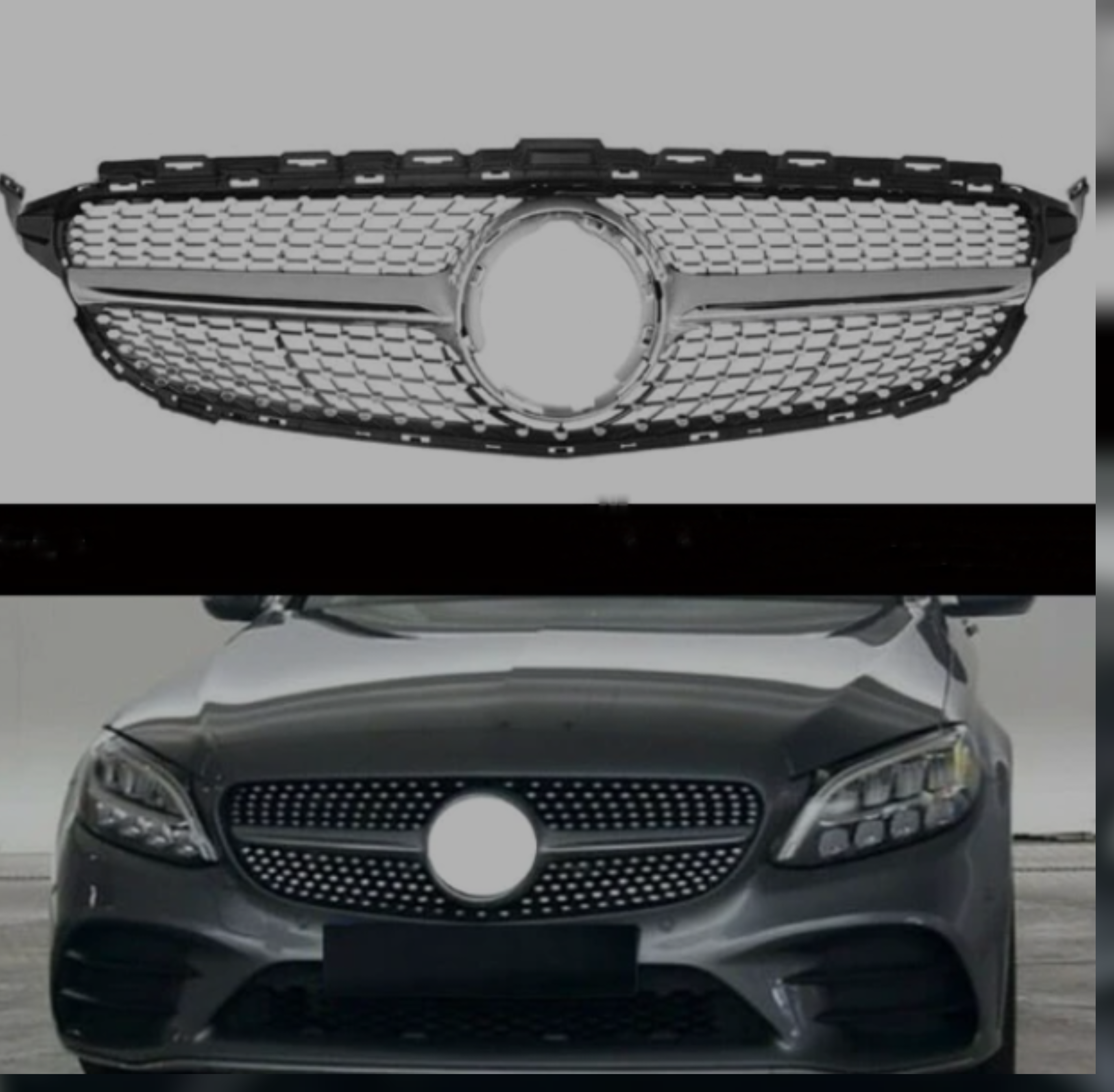 The Benz 205 Diamond Silver Chrome Show Grill (2019-2022) offers a luxurious and refined enhancement for compatible Mercedes-Benz C-Class models: