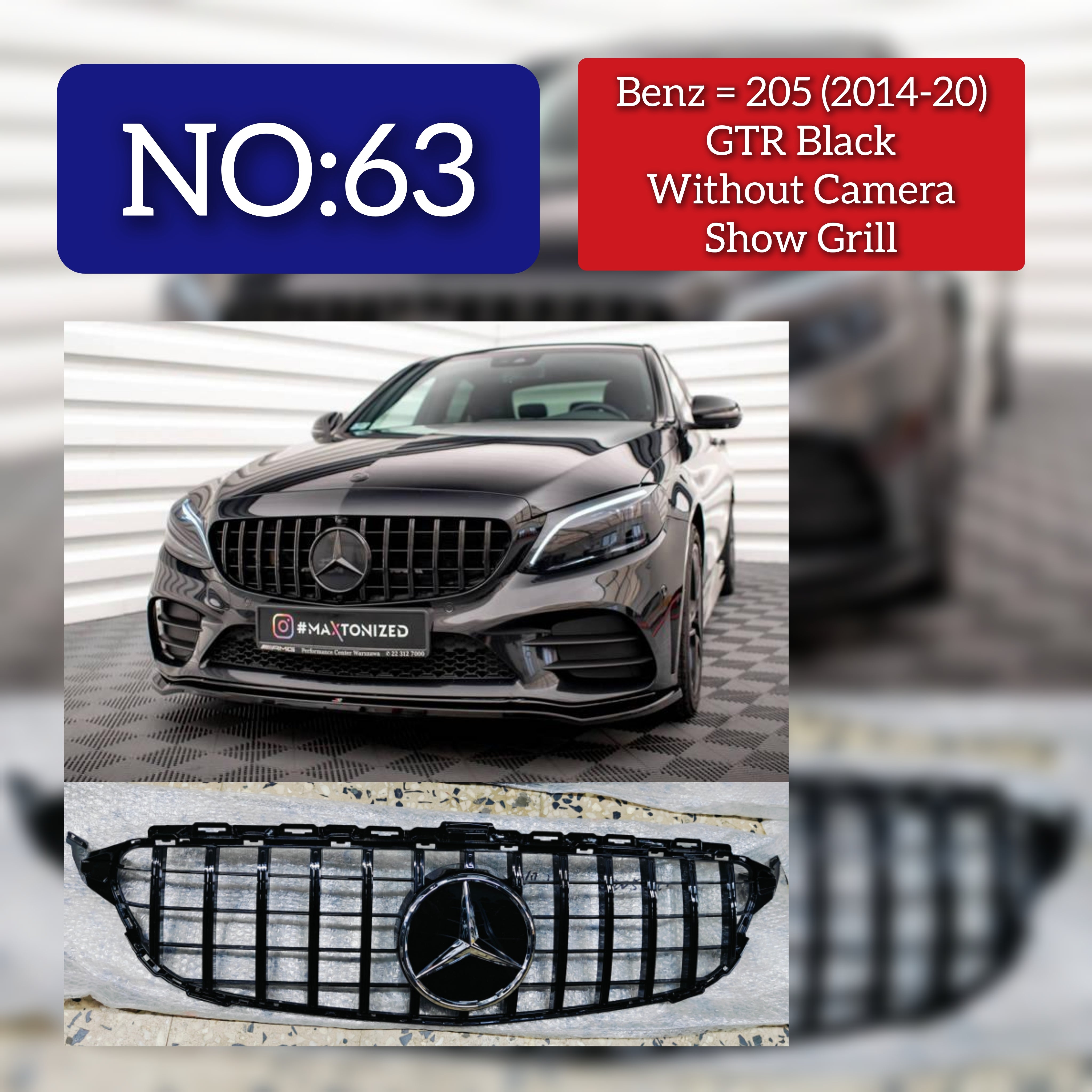 The Benz 205 GTR Black Chrome Show Grill (2014–2019) offers a sleek and sporty upgrade for compatible Mercedes-Benz C-Class models: