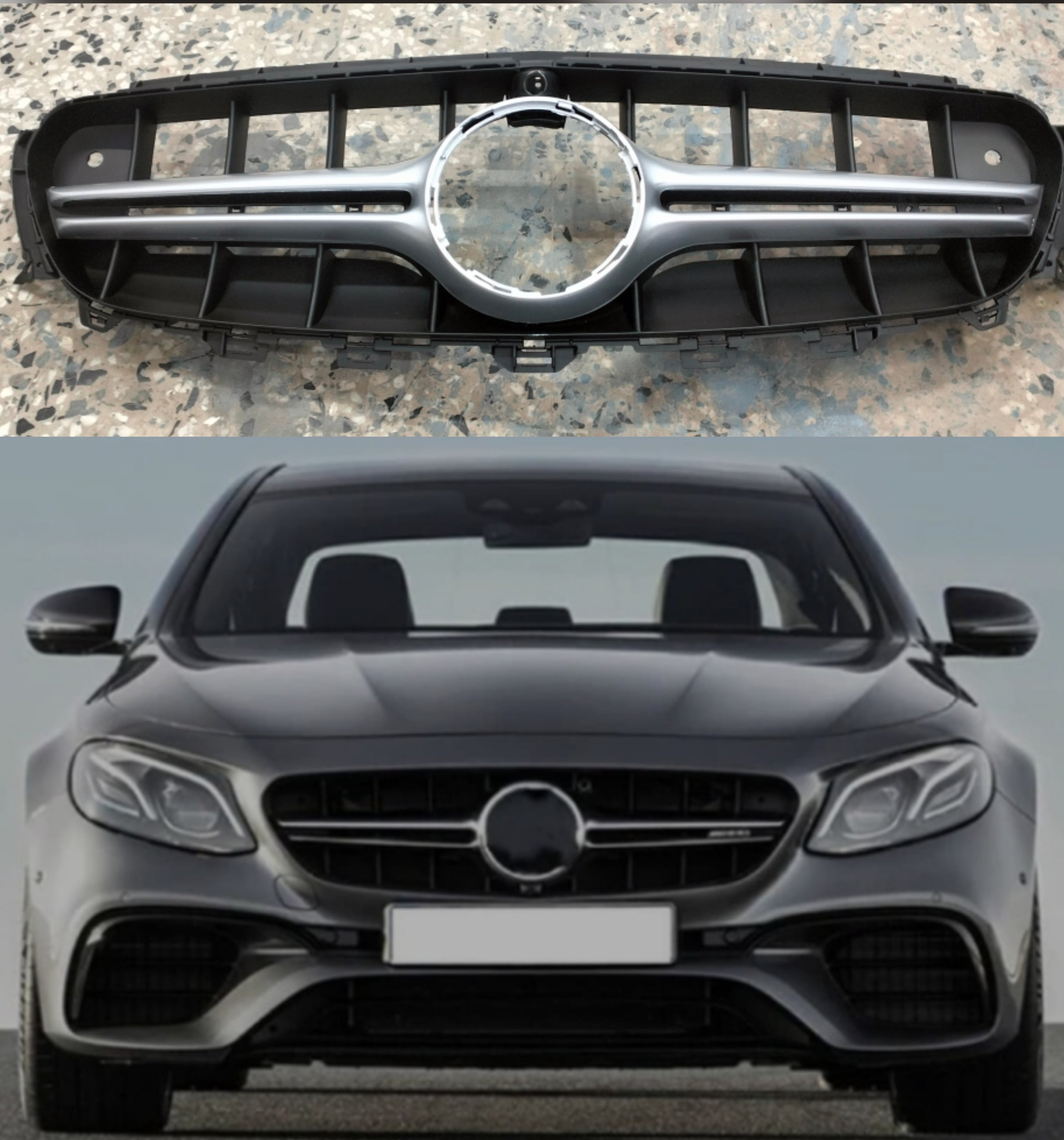 The Benz 213 AMG E63 Silver Chrome Show Grill (2016-2021) offers a blend of sportiness and elegance for compatible Mercedes-Benz E-Class models, particularly the AMG E63: