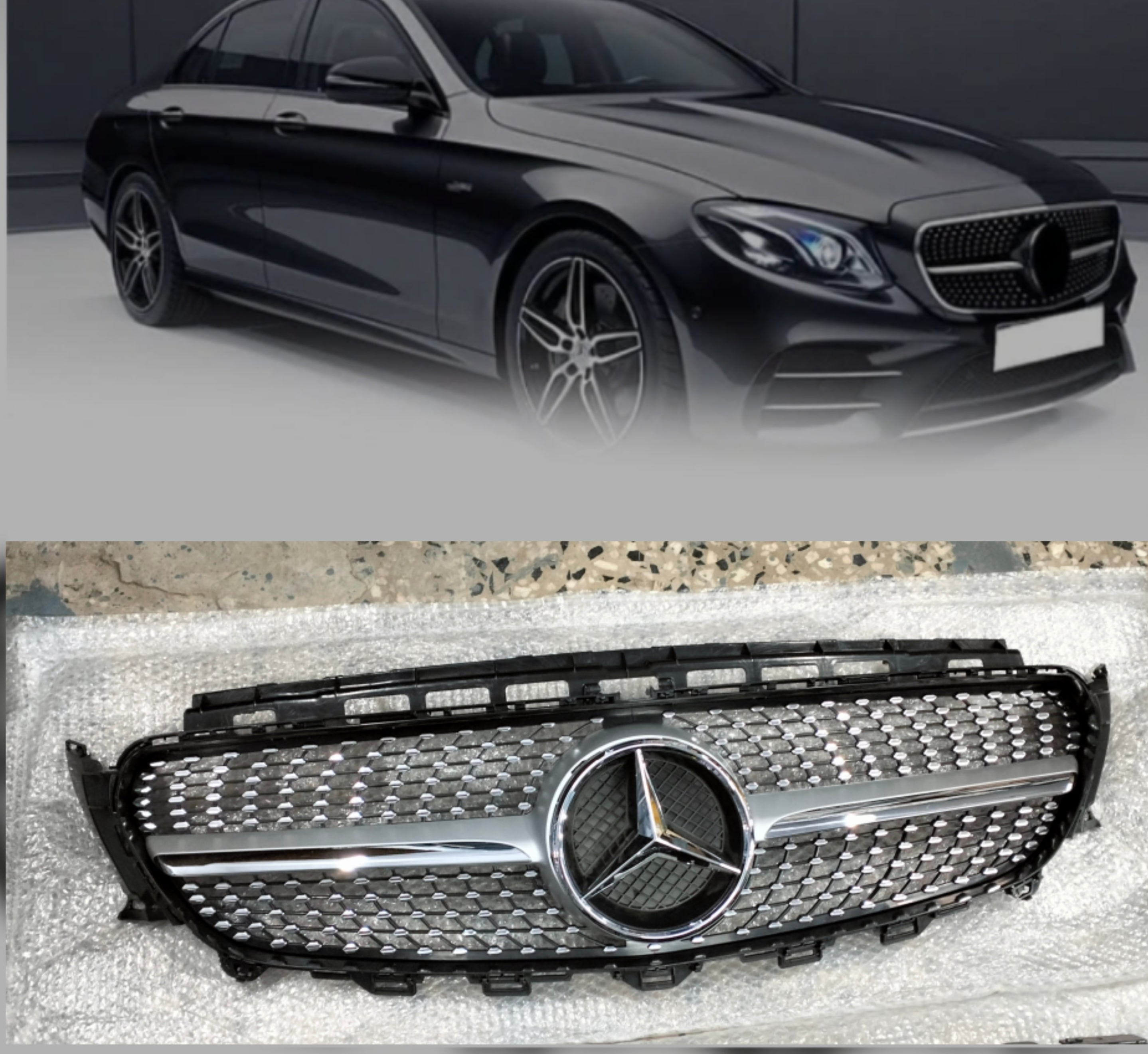 The Benz 213 Diamond Silver Chrome Show Grill (2016-2021) offers a luxurious and refined enhancement for compatible Mercedes-Benz E-Class models:
