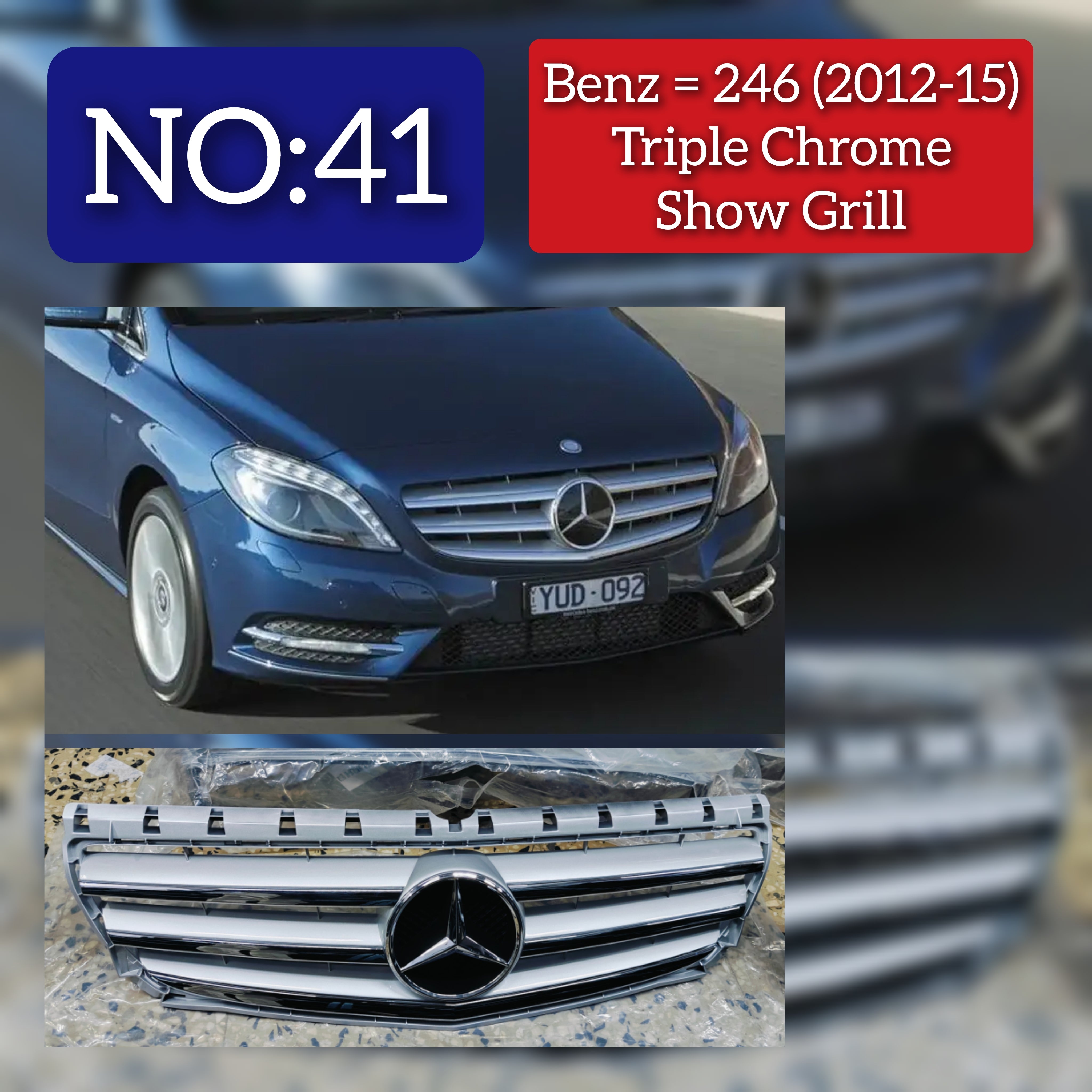 The Benz 246 Classic Silver Chrome Show Grill (2012–2015) offers a timeless and elegant upgrade for compatible Mercedes-Benz B-Class models: