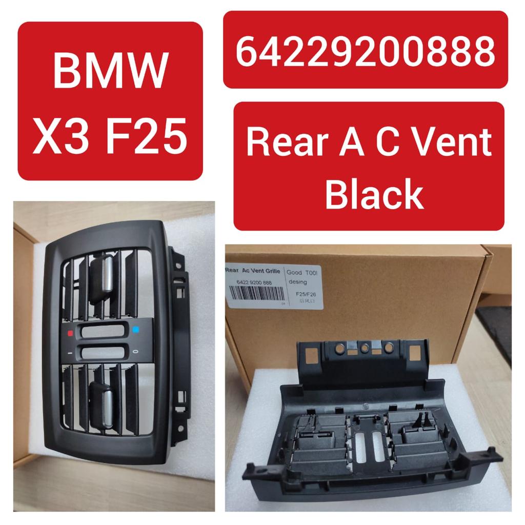 Black Rear AC Vent Grille 64229200888 fits BMW X3 F25 models snugly and works rather well with X4 F26 models too. Rear passengers get efficient airflow again while vehicle premium interior aesthetics stay intact with a robust OEM-quality fit and very smooth finish.