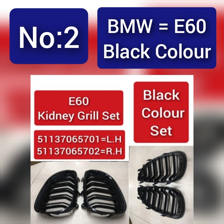 The BMW E60 Black Kidney Grill Set (part numbers 51137065701 for the left side and 51137065702 for the right side) offers a sleek and sporty upgrade for compatible BMW 5 Series (E60) models: