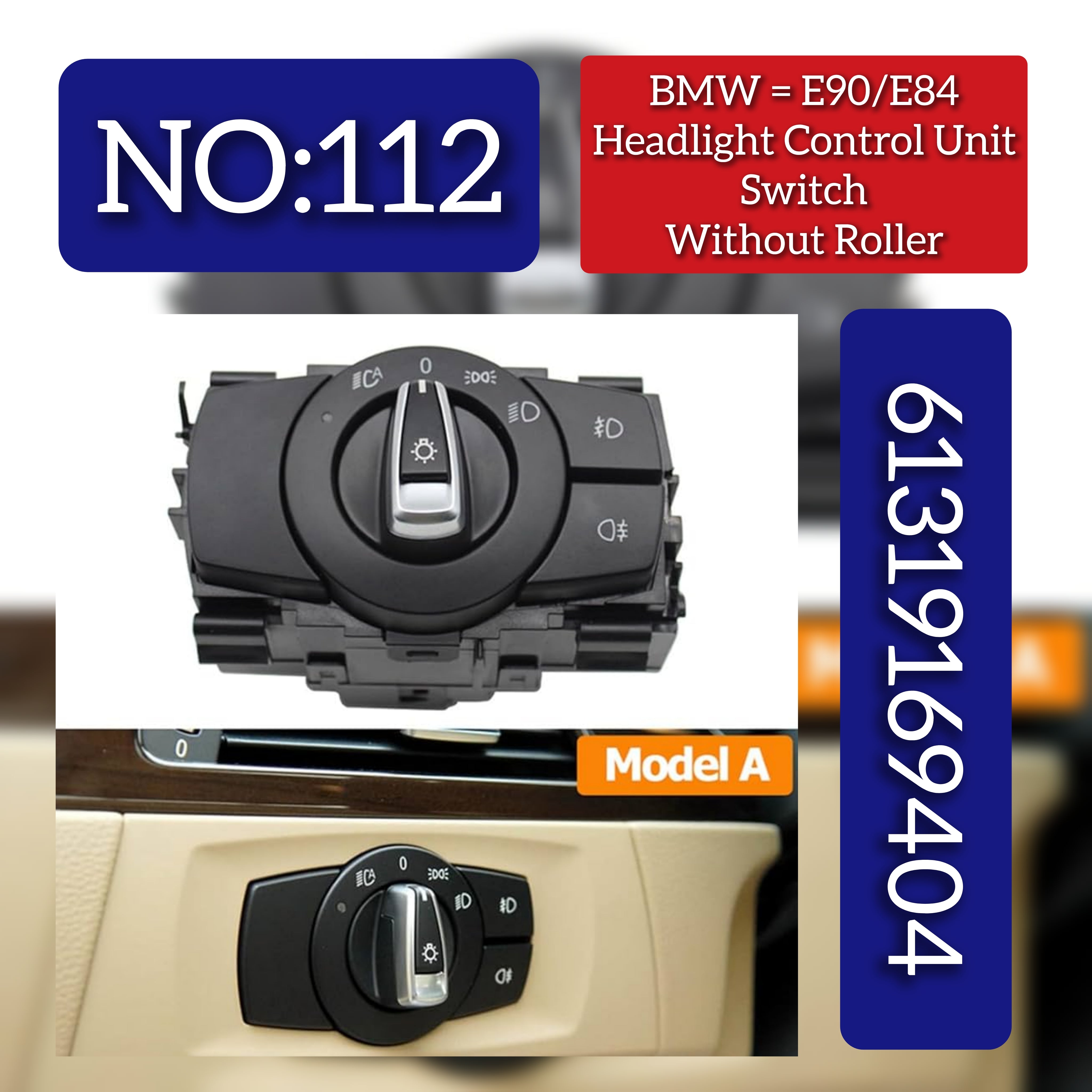 For the BMW E90/E84 (Headlight Control Unit Switch Without Roller) Tag 112: