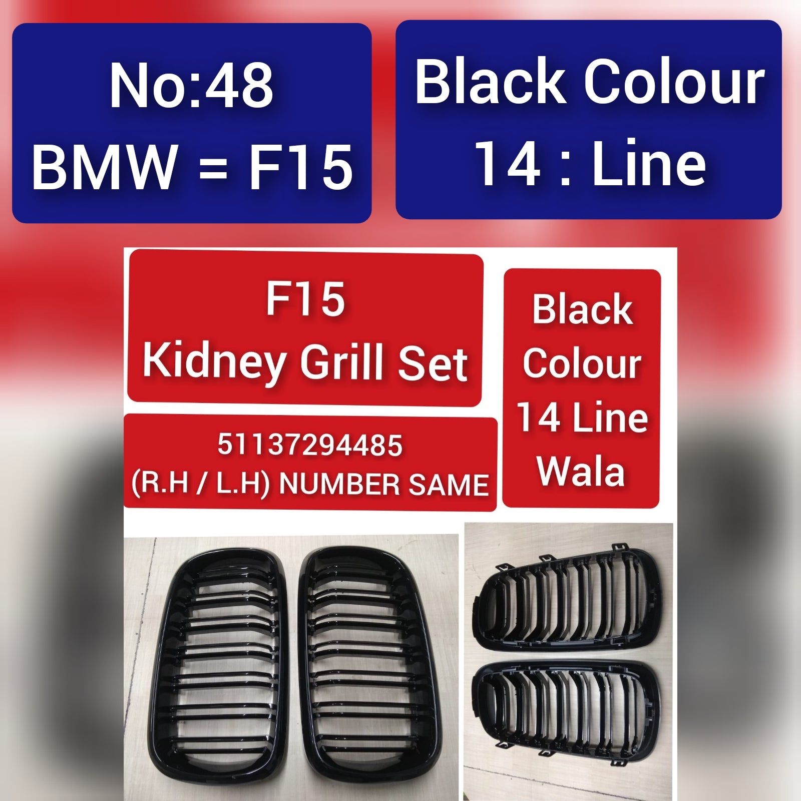 Enhance the boldness of your BMW F15 with the sleek Black Color 14-Line F15 Kidney Grill Set, meticulously designed to elevate the front-end appearance of your vehicle."