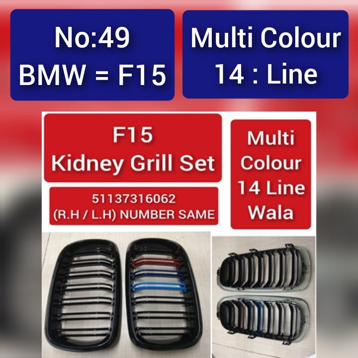 Transform your BMW F15 with the dynamic Multi-Color 14-Line F15 Kidney Grill Set, meticulously crafted to elevate your vehicle's front-end aesthetics."