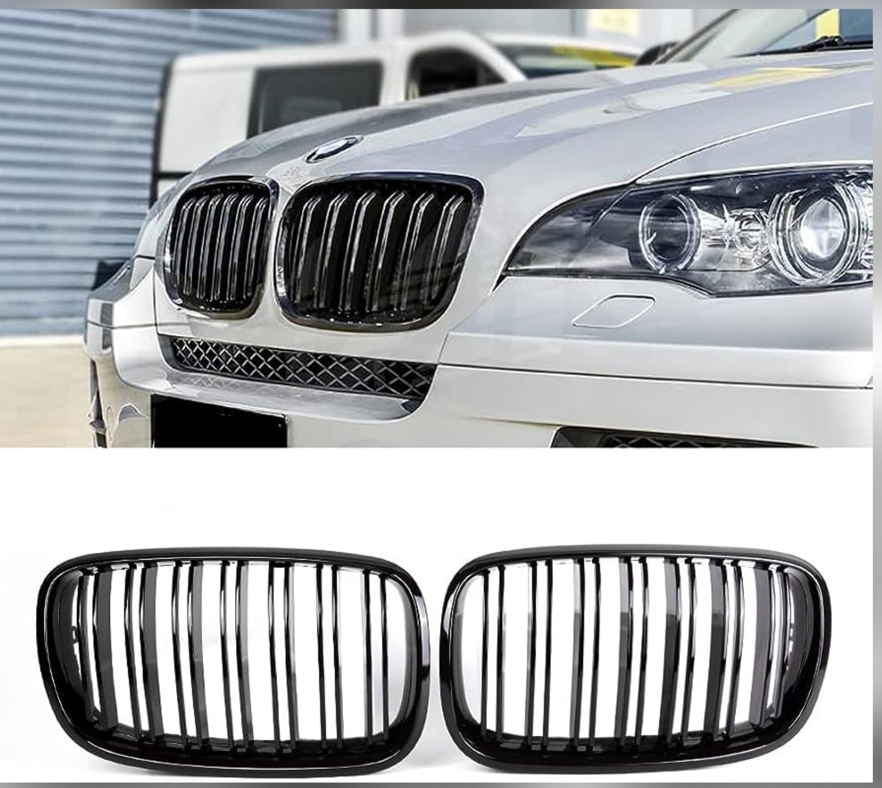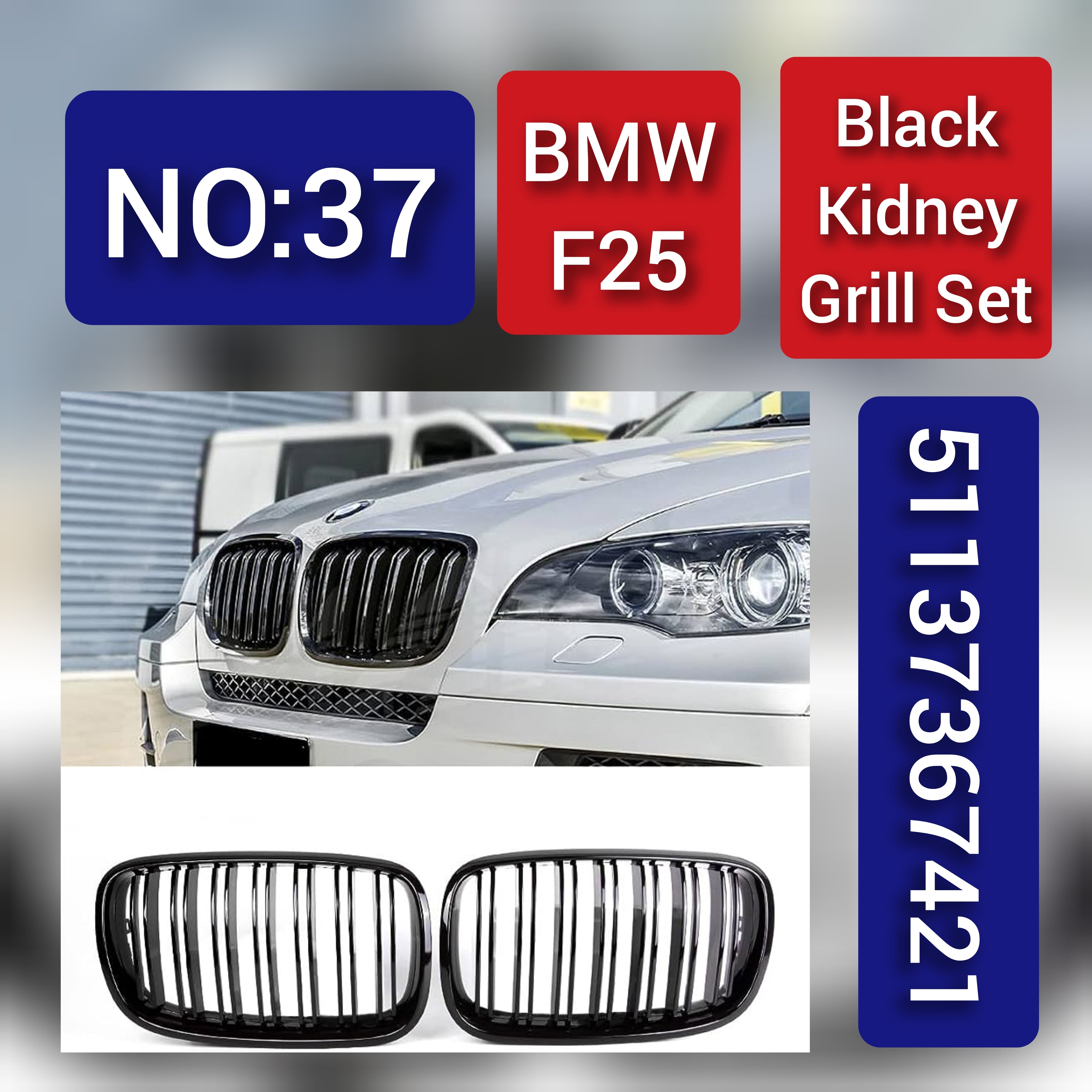 "Upgrade your BMW F25 with the sleek Black Kidney Grill Set, meticulously designed to enhance the front-end appearance of your vehicle."