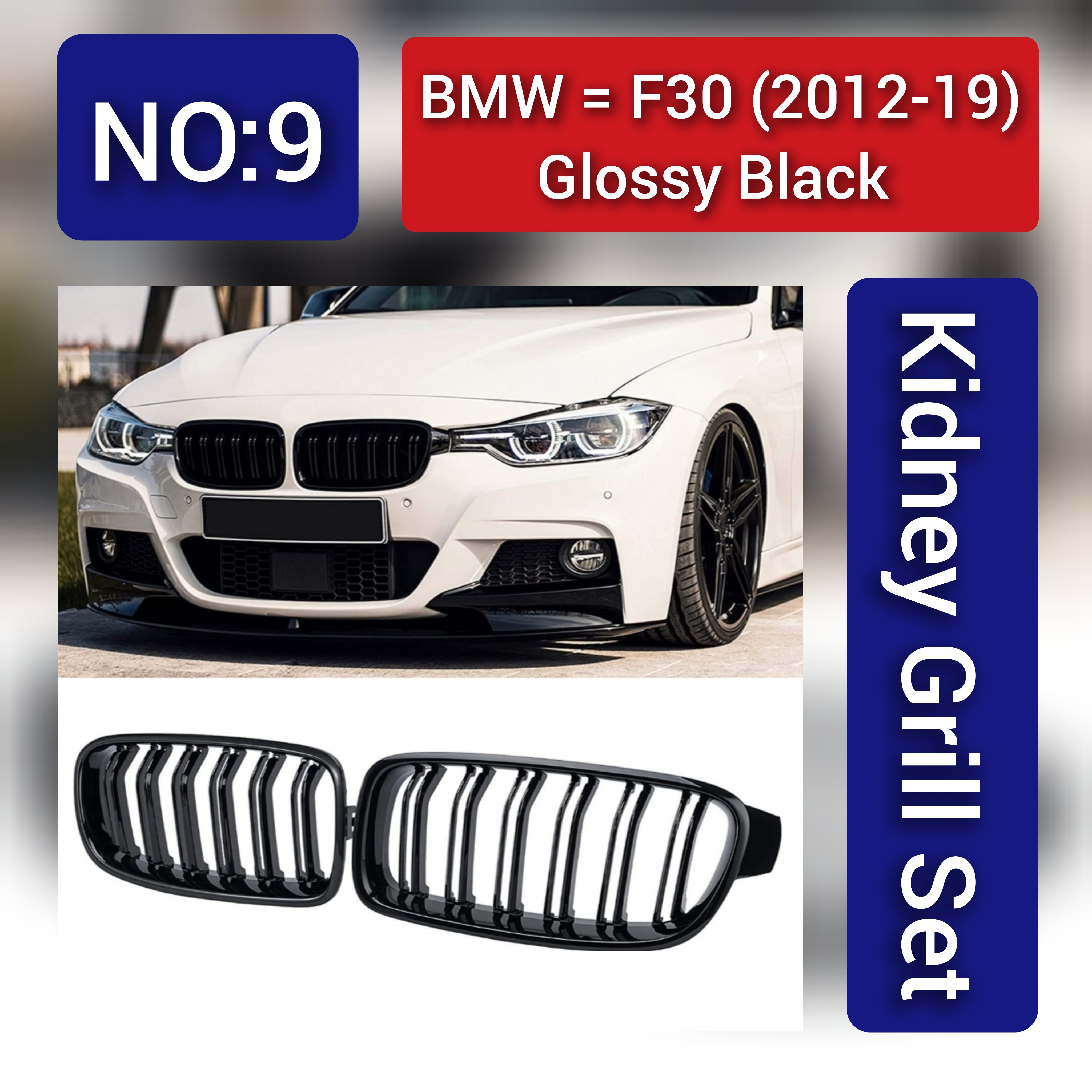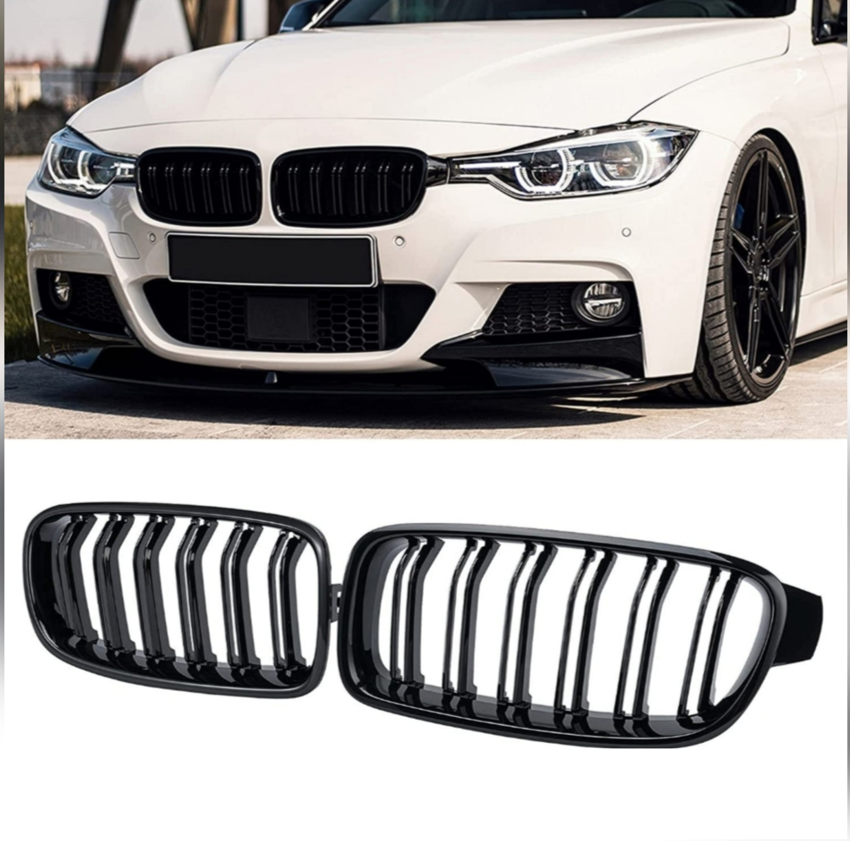 The BMW F30 (2012-2019) Glossy Black Kidney Grill Set offers a sleek and modern upgrade for compatible BMW 3 Series (F30) models: