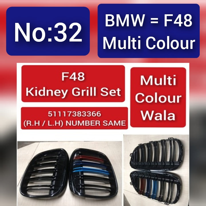 "Upgrade your BMW F48 with the dynamic Multi-Color F48 Kidney Grill Set, designed to enhance your vehicle's visual appeal."