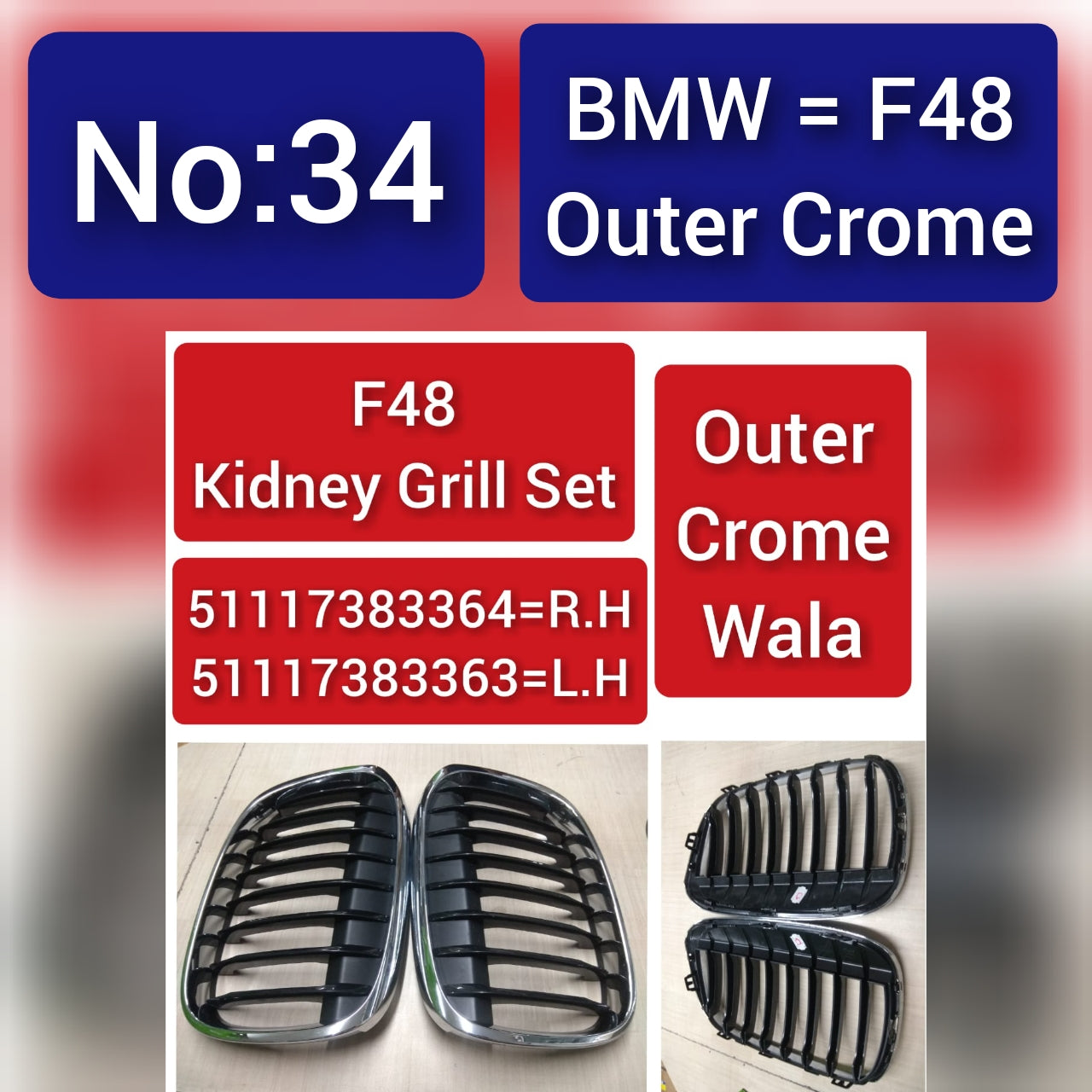 "Upgrade your BMW F48 with the refined Outer Chrome F48 Kidney Grill Set, meticulously crafted to enhance the exterior aesthetics of your vehicle."