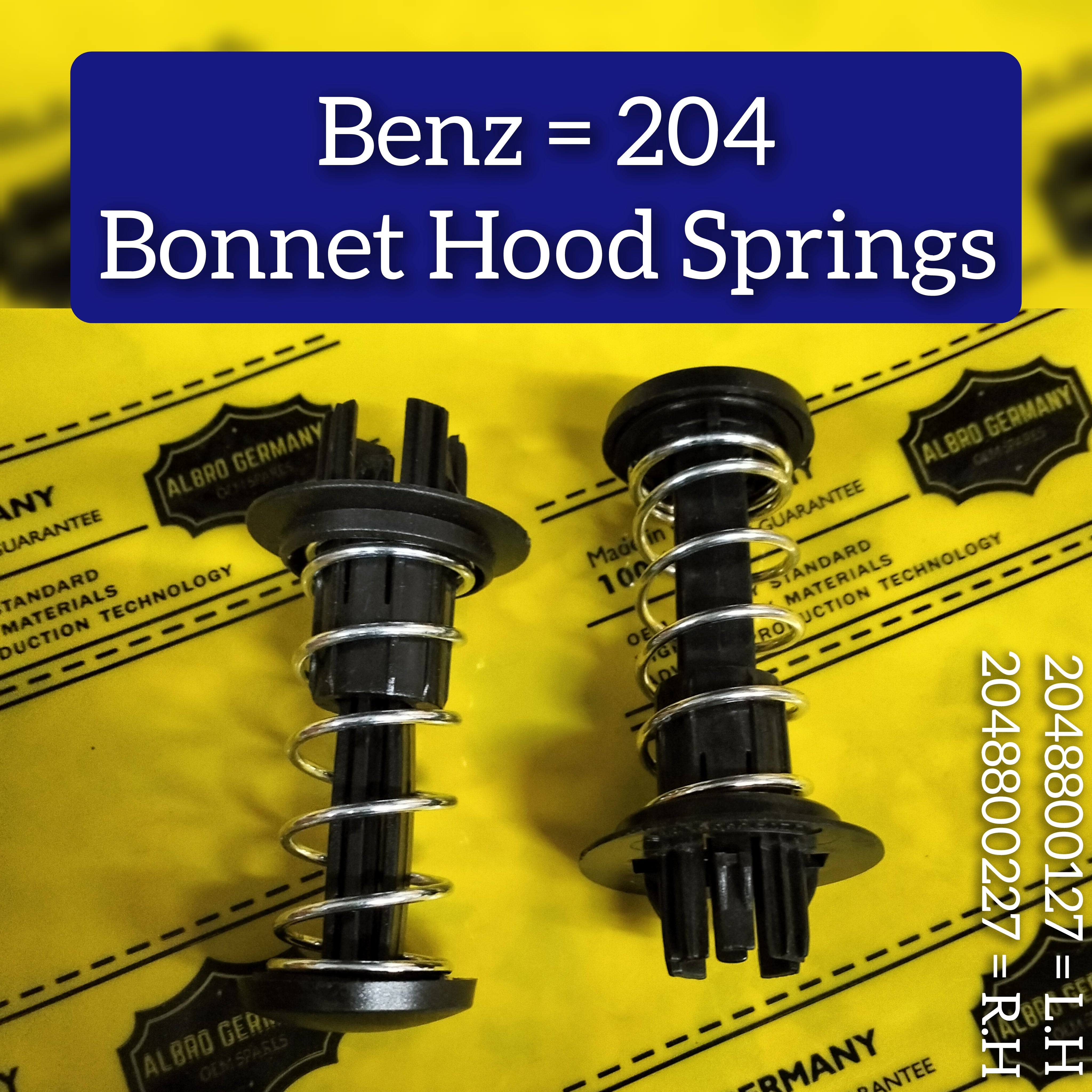 This Bonnet Hood Spring Set is the perfect fit for MERCEEDES BENZ C-CLASS W204 & E-CLASS W212 models. Improve your vehicle's stability and functionality with these high-quality left and right springs. Designed for easy installation and maximum durability, these springs are a must-have for any expert in the automotive industry.