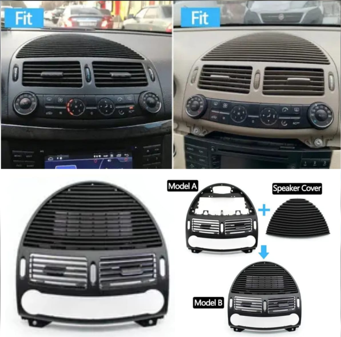 This high-quality center AC vent grille is compatible with Mercedes-Benz E-Class W211 models. Made of durable and sleek black material, it adds a touch of style to your vehicle's interior while effectively and evenly distributing cool air. Expertly designed for a perfect fit, ensuring optimal performance and long-lasting use.