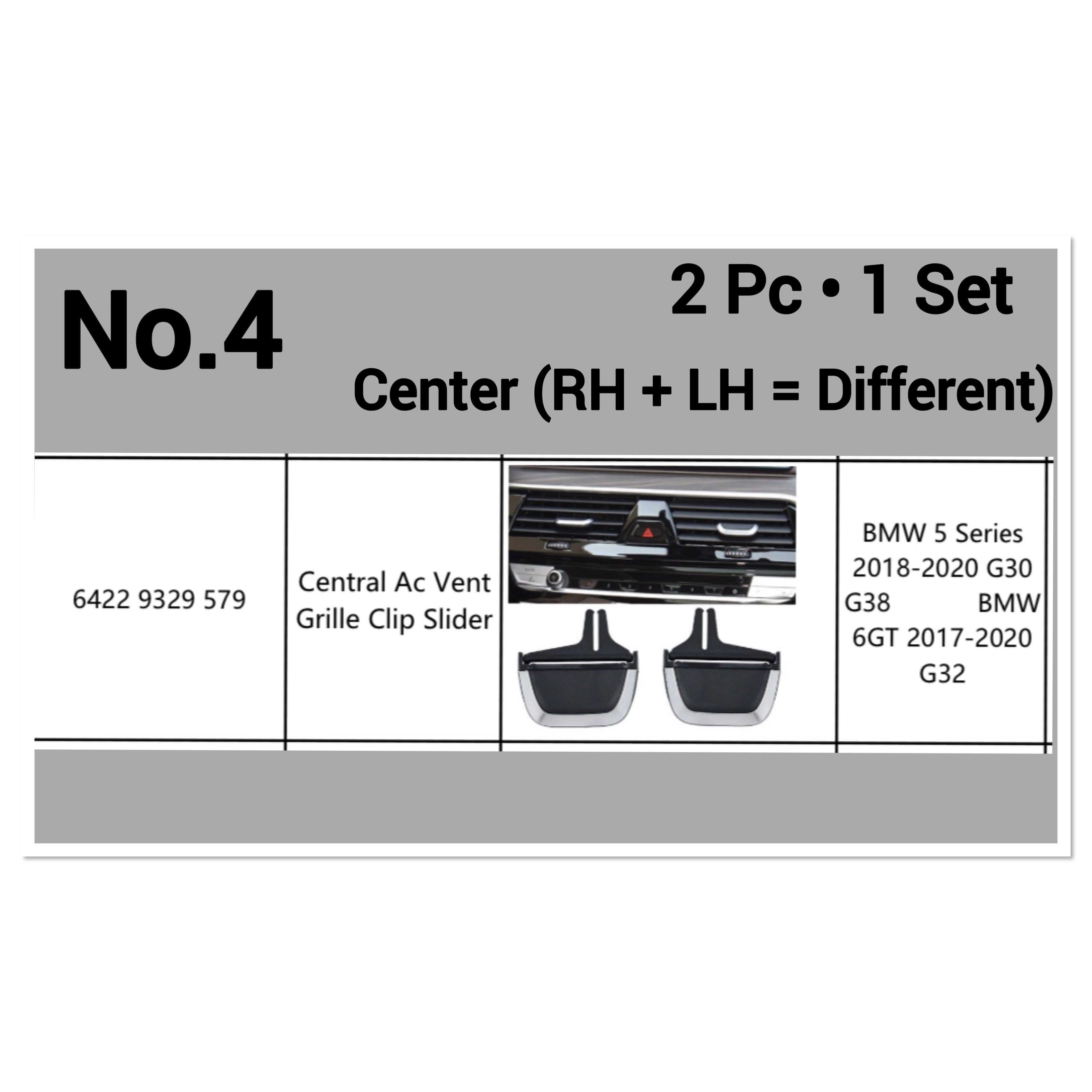 This repair kit features a set of 2 center air conditioner vent slider clips, compatible with the BMW 5 Series G30. Restore proper functioning of your AC vents with ease and precision. Keep your vehicle's ventilation system running smoothly with this professional-grade kit.