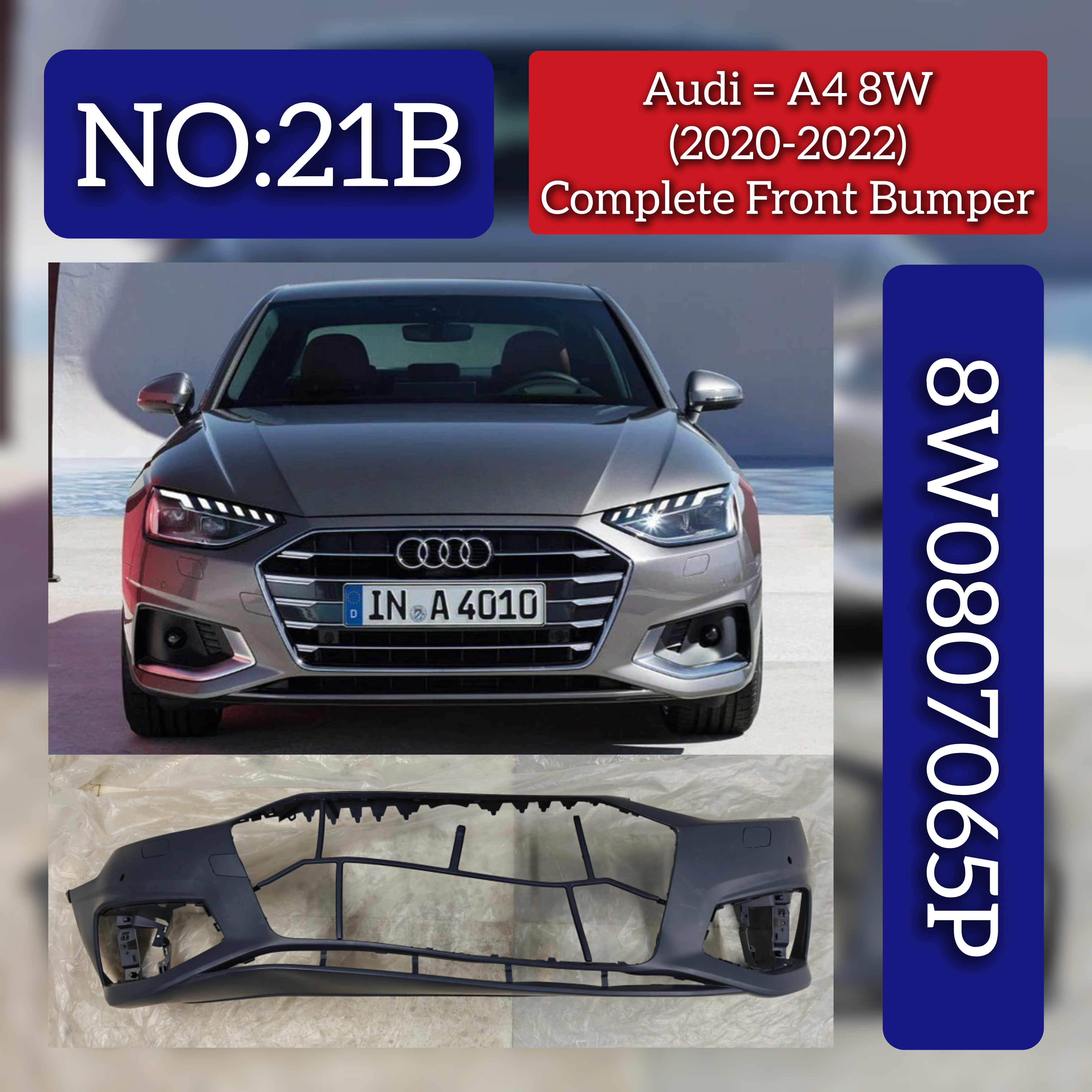 The Complete Front Bumper 8W0807065P 8WD807065P is designed specifically for the AUDI A4 8W model years 2020 to 2022. Engineered to ensure perfect fit and finish, this bumper offers reliable protection to the front end of your vehicle while maintaining the original aesthetic appeal. Its robust construction helps absorb impact and enhances vehicle safety, making it an essential replacement part for collision repairs or upgrades. Compatible with OEM standards, this bumper guarantees quality and durability for a seamless restoration of your AUDI A4’s exterior.