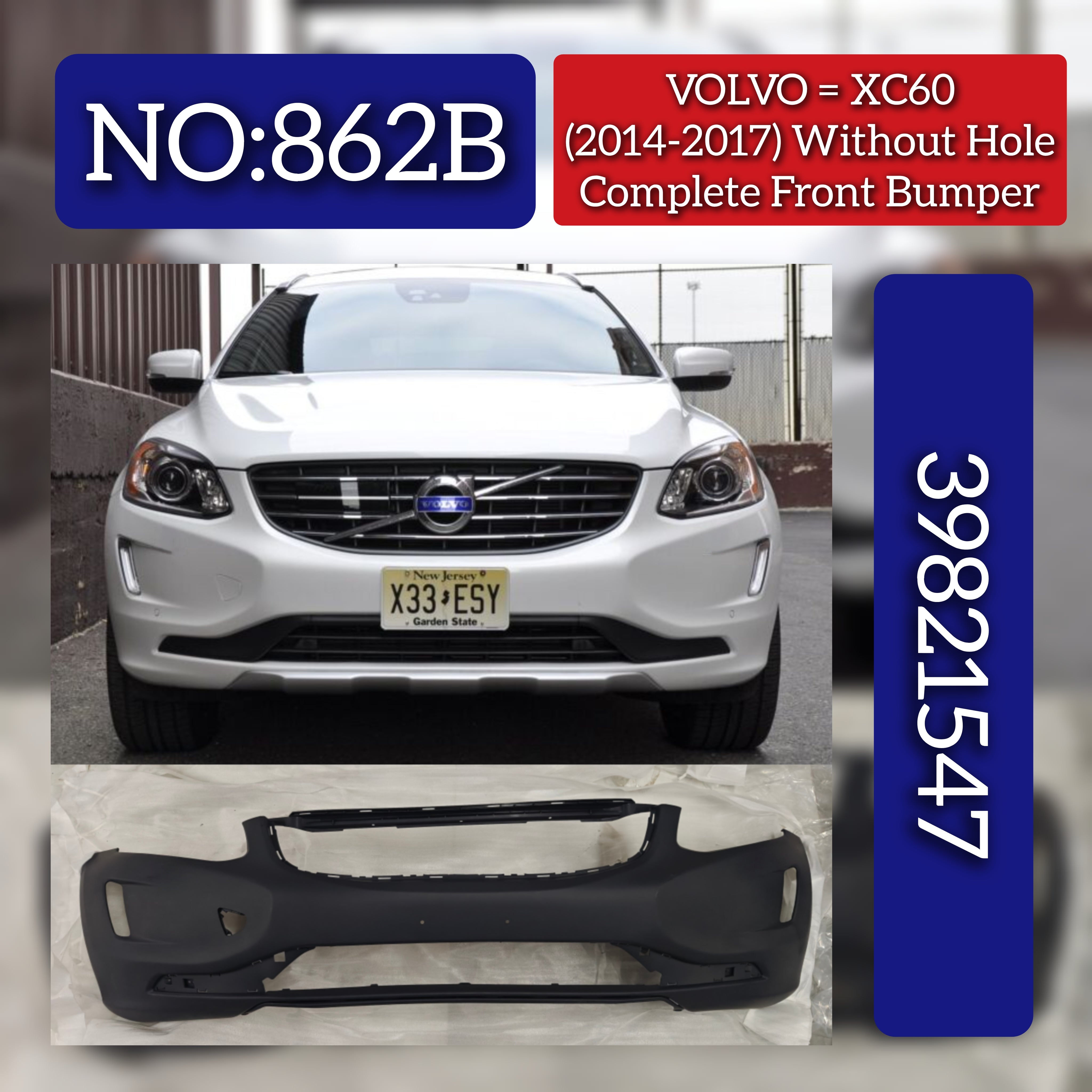 This Complete Front Bumper is engineered for the VOLVO XC60 I SUV (156) model years 2014-2017, compatible with part numbers 39821547 and 39826931. Designed without holes, it allows for a clean fit tailored to vehicles without additional front sensors or accessories. Crafted to match OEM standards, it provides effective front-end protection while maintaining the original design aesthetics. This bumper is ideal for professional body shop replacements or precise vehicle restoration, ensuring durability and an exact fit for your Volvo.