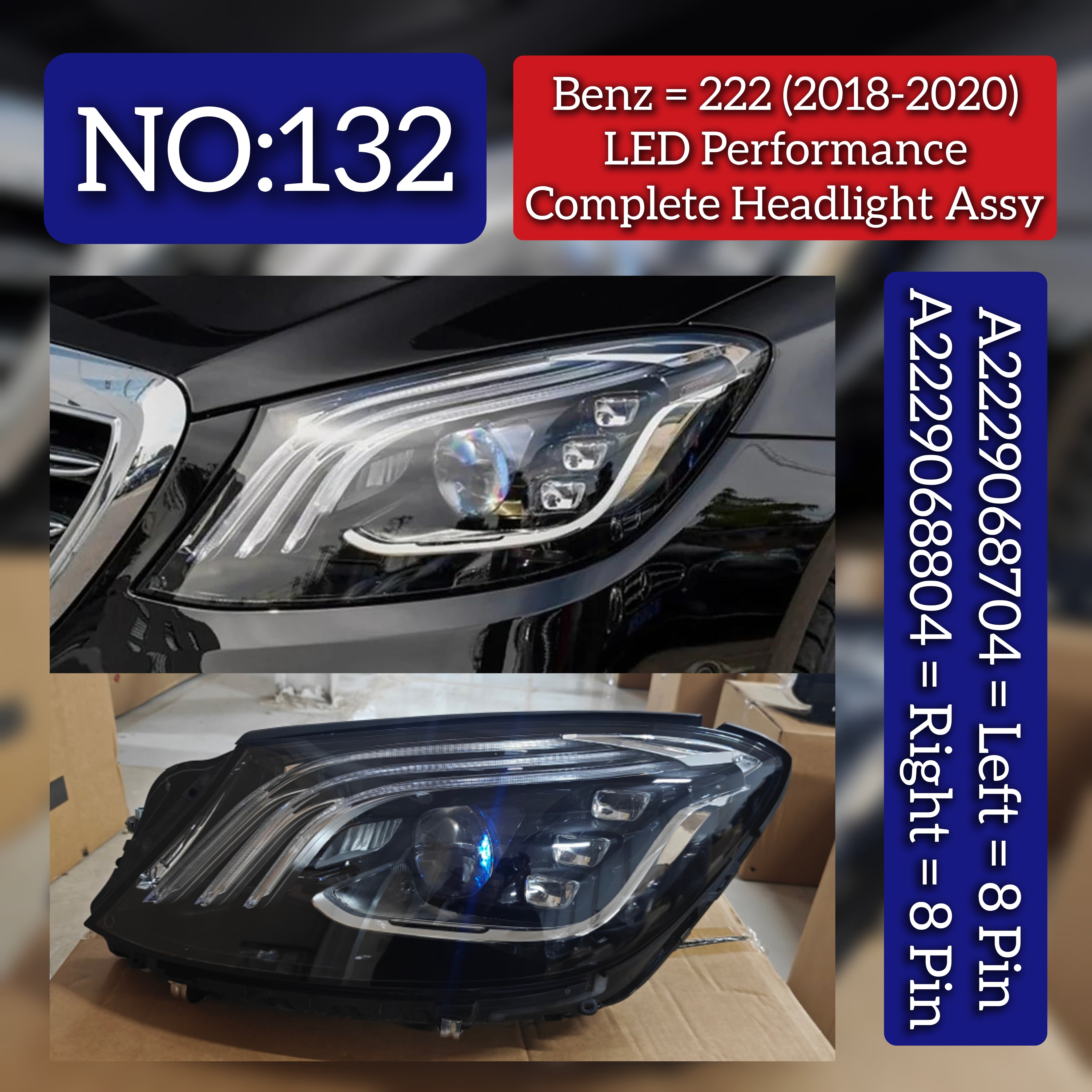 Enhance your Mercedes Benz S-Class (W222) 2018-2020 with this Complete Headlight Assembly featuring advanced LED Performance. Designed for both left (A2229068704) and right (A2229068804) sides, it ensures precise fitment and superior illumination. This assembly improves nighttime visibility and safety while maintaining the vehicle’s original aesthetic and functionality. Durable and expertly engineered, it delivers reliable performance and longevity for an optimal driving experience.