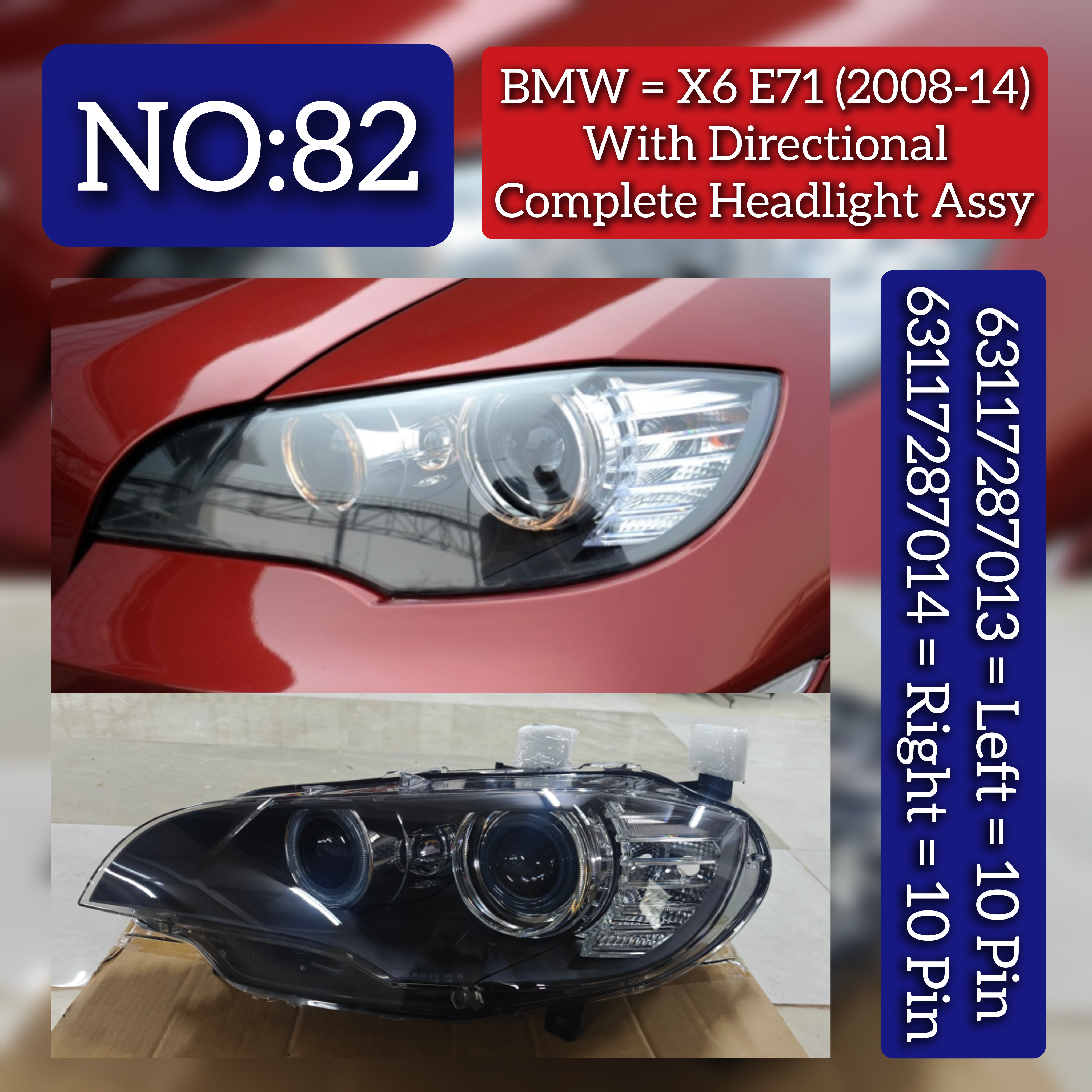 This complete headlight assembly set, including left (63117287013) and right (63117287014) units with directionals, is designed specifically for BMW X6 (E71) models from 2008 to 2014. Featuring both sides with a 10-pin connection, it ensures precise fitment and reliable electrical performance. Engineered to restore original lighting functionality and aesthetic, these assemblies enhance visibility and safety while maintaining your vehicle’s factory standards. Ideal for professional repairs or upgrades, they guarantee seamless integration with your BMW’s existing systems.