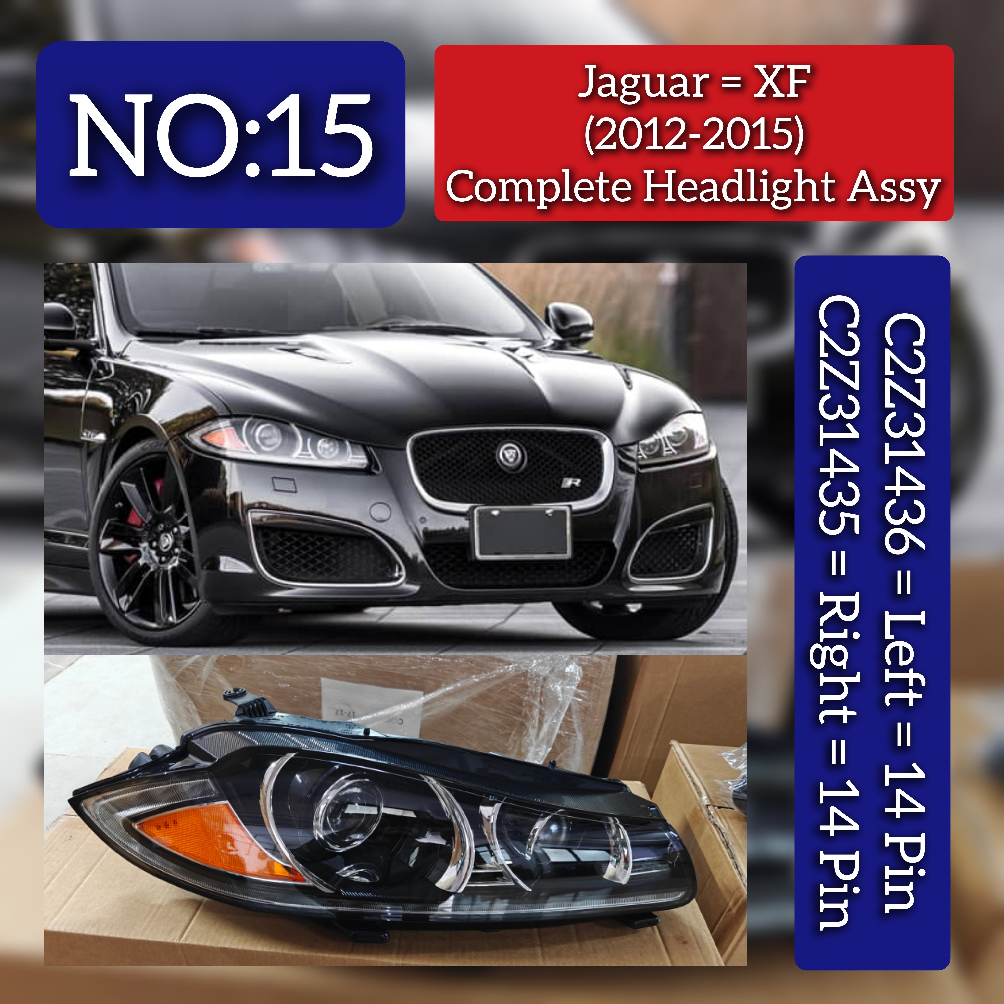 Enhance your Jaguar XF (2012-2015) with this Complete Headlight Assembly Set, featuring left (C2Z31436) and right (C2Z31435) units. Precision-engineered for seamless fit and durability, these headlights restore optimal lighting performance and visibility, ensuring safety and style on the road. Easy to install and fully compatible, they deliver reliable illumination for both urban and highway driving conditions. Maintain your vehicle’s original integrity with this expertly crafted replacement set.