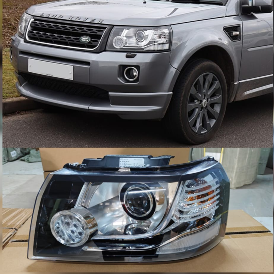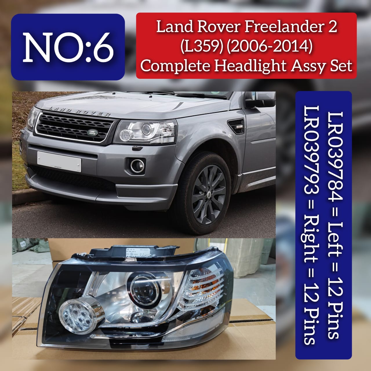 Upgrade your vehicle's lighting with our complete headlight assembly set, compatible with FREELANDER 2 (L359) and LR2 models. Improve safety and visibility on the road with these high-quality, expertly crafted headlights, featuring LR039793 on the right and LR039784 on the left. Drive with confidence and precision.