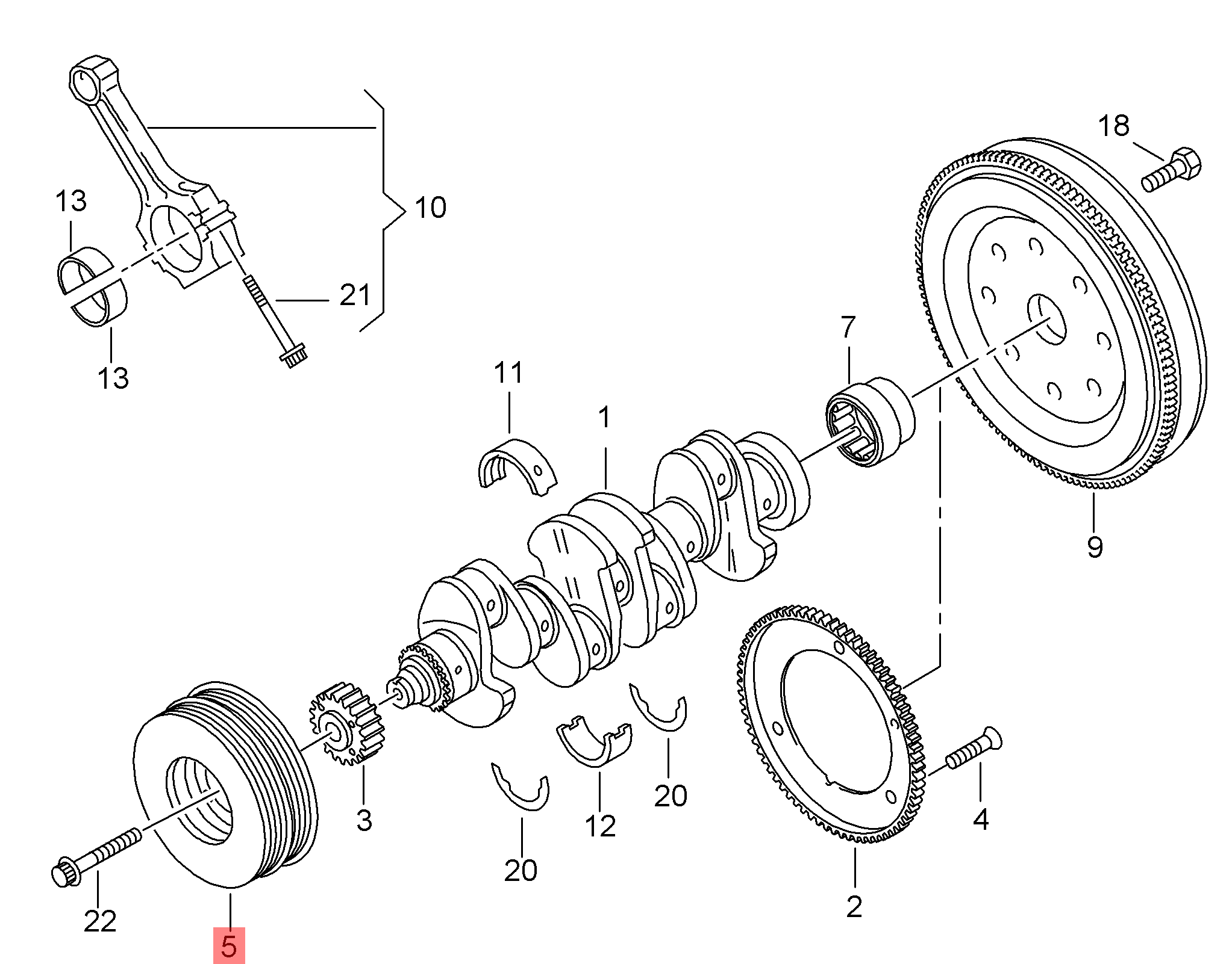 Increase your engine's efficiency with the Crankshaft Pulley. Designed specifically for AUDI A3, A4, A5, A6, A7, A8, Q3, Q5, and TT models, this pulley is compatible with multiple part numbers for a hassle-free installation. Improve your vehicle's performance and extend its lifespan with the Tag-CP-05 crankshaft pulley.