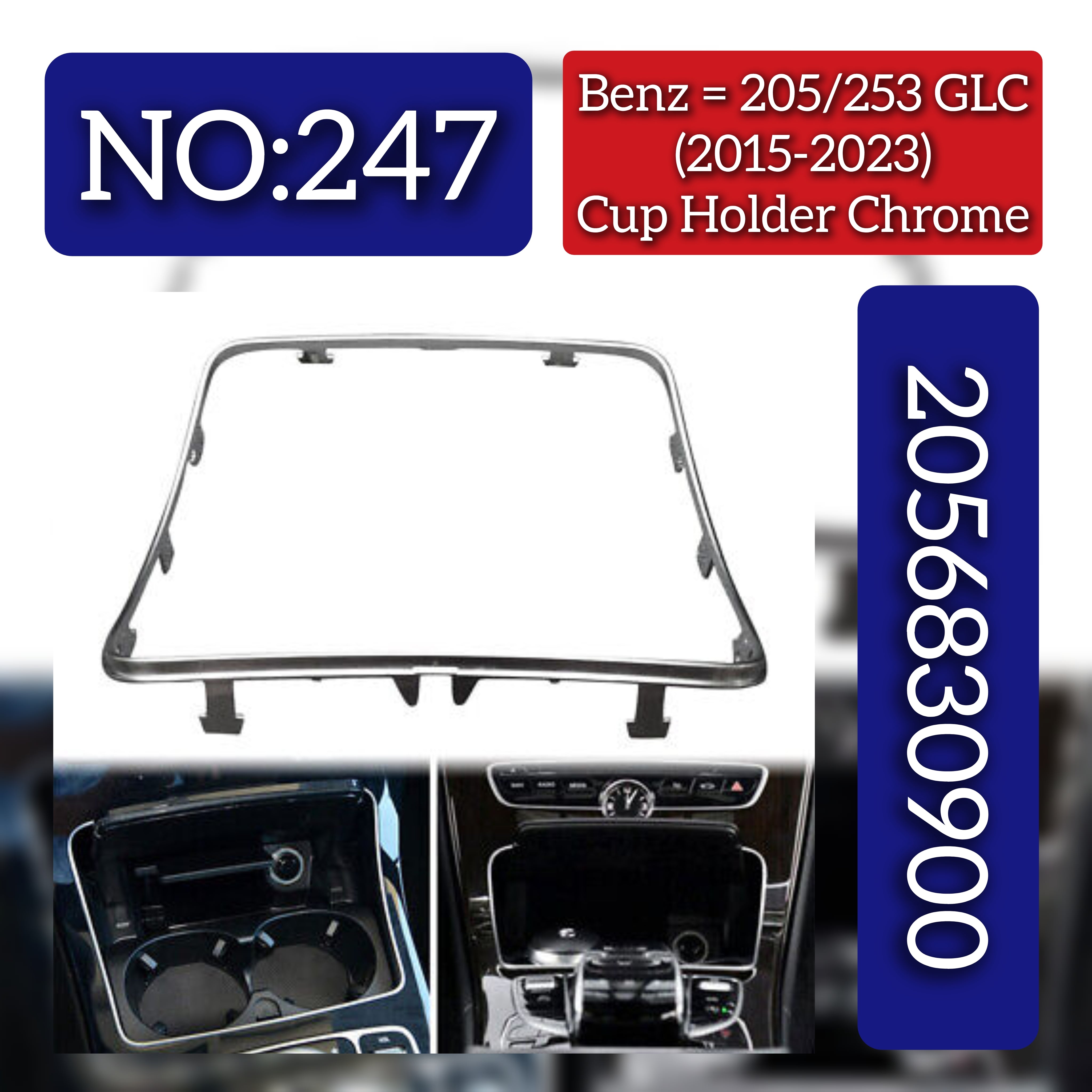 This Cup Holder Chrome 2056830900 is specifically designed for Mercedes Benz C CLASS W205 and GLC X253 models, ensuring precise fit and compatibility. Crafted with high-quality chrome material, it enhances the interior’s elegance while providing sturdy support for your cups and bottles. A reliable replacement part that maintains the original look and functionality of your vehicle’s cabin, perfect for maintaining the premium standards of your Mercedes Benz.