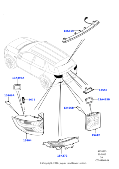 This Dickey Light Assembly set includes both right (LR101696) and left (LR101700) units, designed with 4-pin connectors to ensure compatibility with the Land Rover Discovery Sport L550 models from 2015 to 2019. Manufactured to meet original equipment standards, these assemblies offer precise fitment and reliable rear lighting functions, enhancing vehicle safety and maintaining factory performance. An essential replacement for maintaining optimal visibility and signaling integrity on your Discovery Sport.