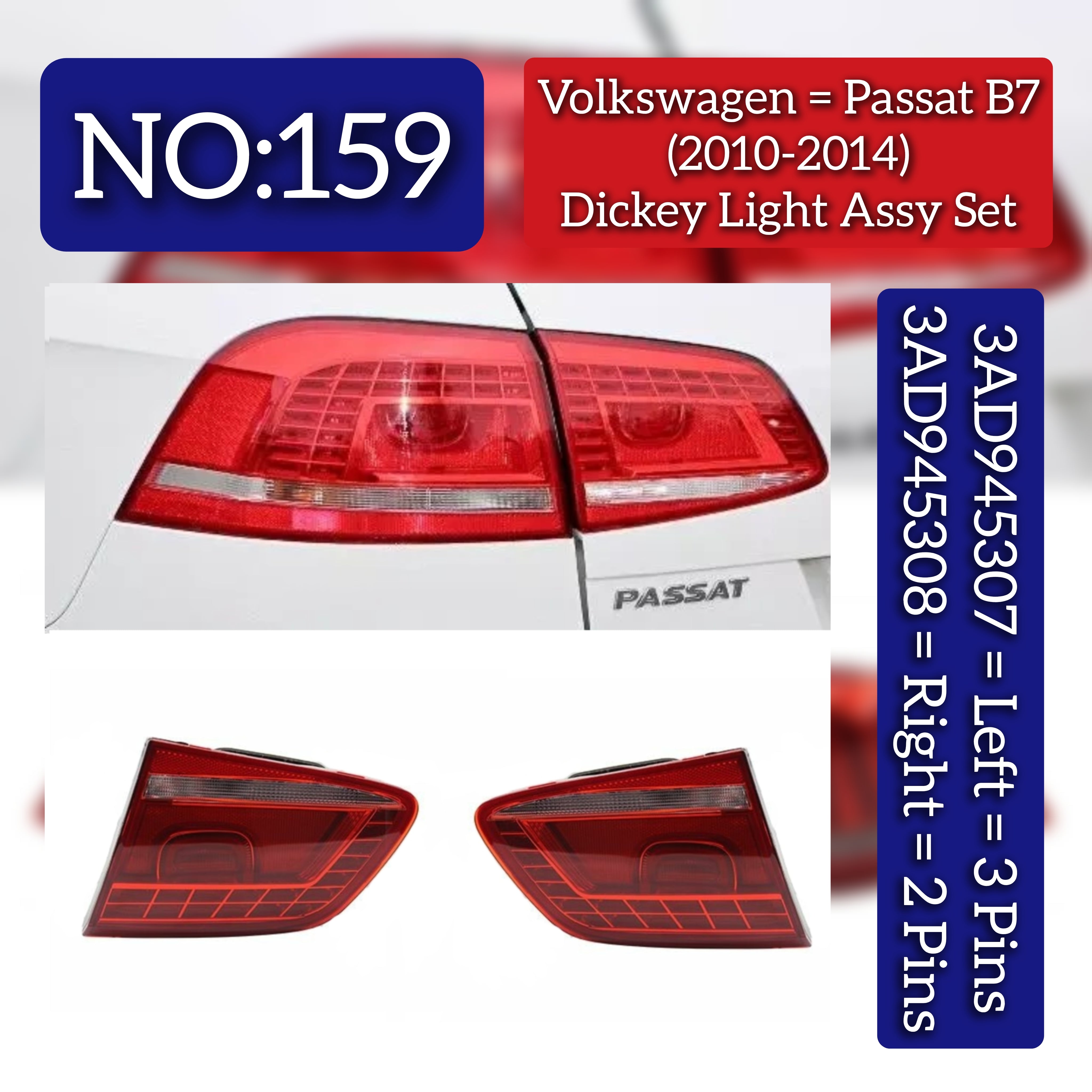 Enhance your VW Passat B7 (2010-2014) with this high-quality Dicky Light set, featuring left (3AD945307) and right (3AD945308) units. Designed for perfect compatibility and reliable performance, these lights ensure optimal visibility and safety. Manufactured to meet OEM standards, they offer durability and seamless integration with your vehicle’s existing wiring and mounting points. Ideal for professional replacements or upgrades, this set maintains your car’s original look while improving rear illumination