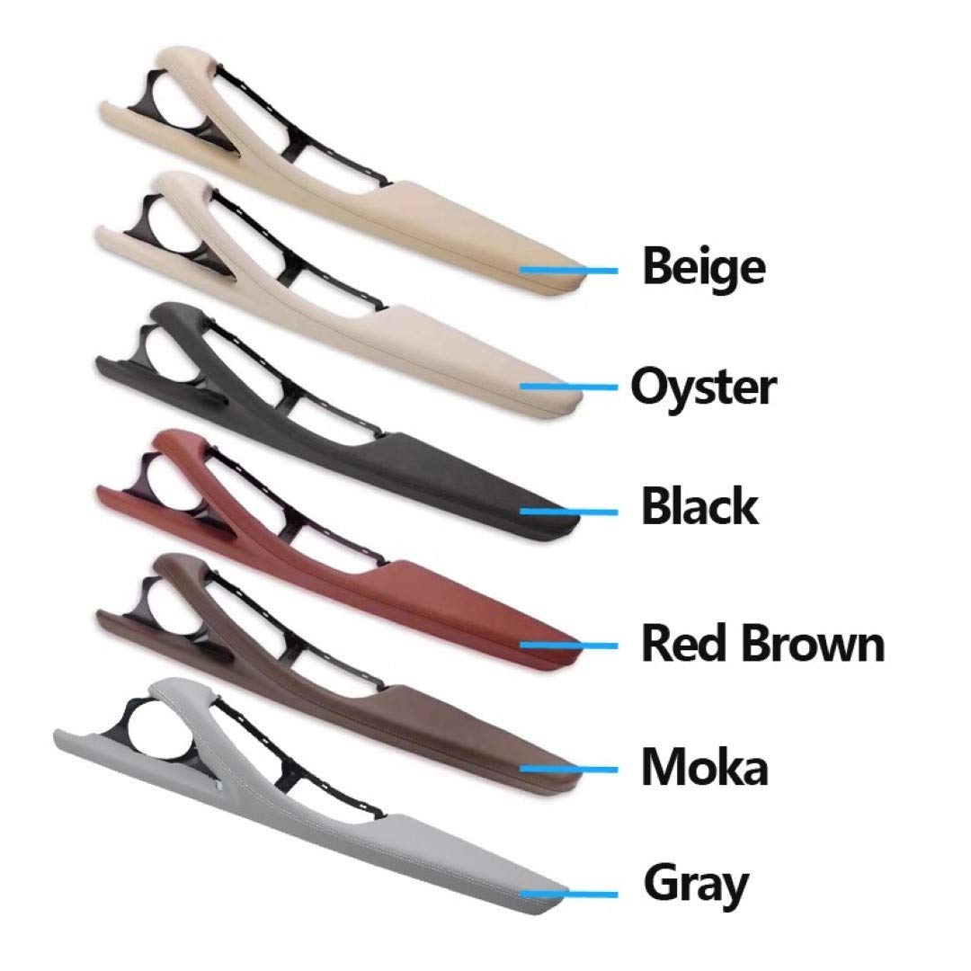 Details: LHD RHD Interior Door Armrest with leather outer frame support Assembly For B.M.W F10 F18 2010-2017 The most original pull handle for B.M.W will be broken like above pictures due to the soft material. So, we launched new upgraded ABS material replacement which is no-sticky hand ,more solid and durable than original parts. RHD Black:5171 7273 058 RHD Beige:5141 7273 050 RHD Oyster:5141 7273 060 RHD Gray:5141 7273 052 RHD Brown:5141 7273 062 RHD Red Brown:5141 7273 062-1 RHD Moka:5141 7359 414 Material: PC and ABS, Rubberized Coating.Top Quality Ultra-fine fiber Leather. Advantage: Upgraded design, More Solid, No sticky Hand, Replace perfectly. Application: For BMW 5 Series F10/F11/F18 2010-2017 520, 523, 525, 528, 530 Please confirm the OE No is correct with our parts before purchasing so that it can be fitted with your car.