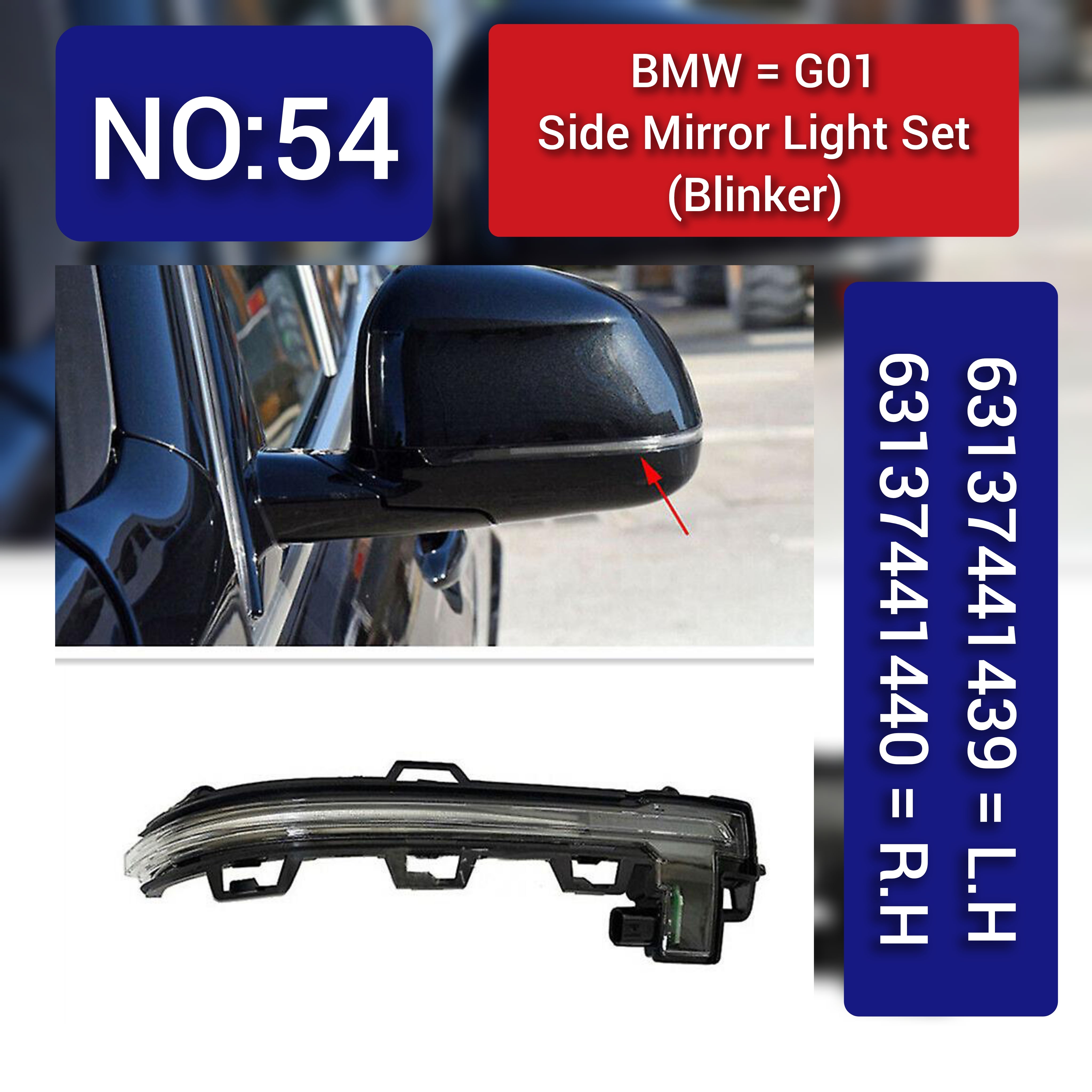 Upgrade your BMW with these dynamic turn signal LED mirror lights, compatible with X3 G01, X4 G02, X5 G05, X6 G06, and X7 G07 models. Enhance safety and add a modern touch to your vehicle with this functional and stylish upgrade.
