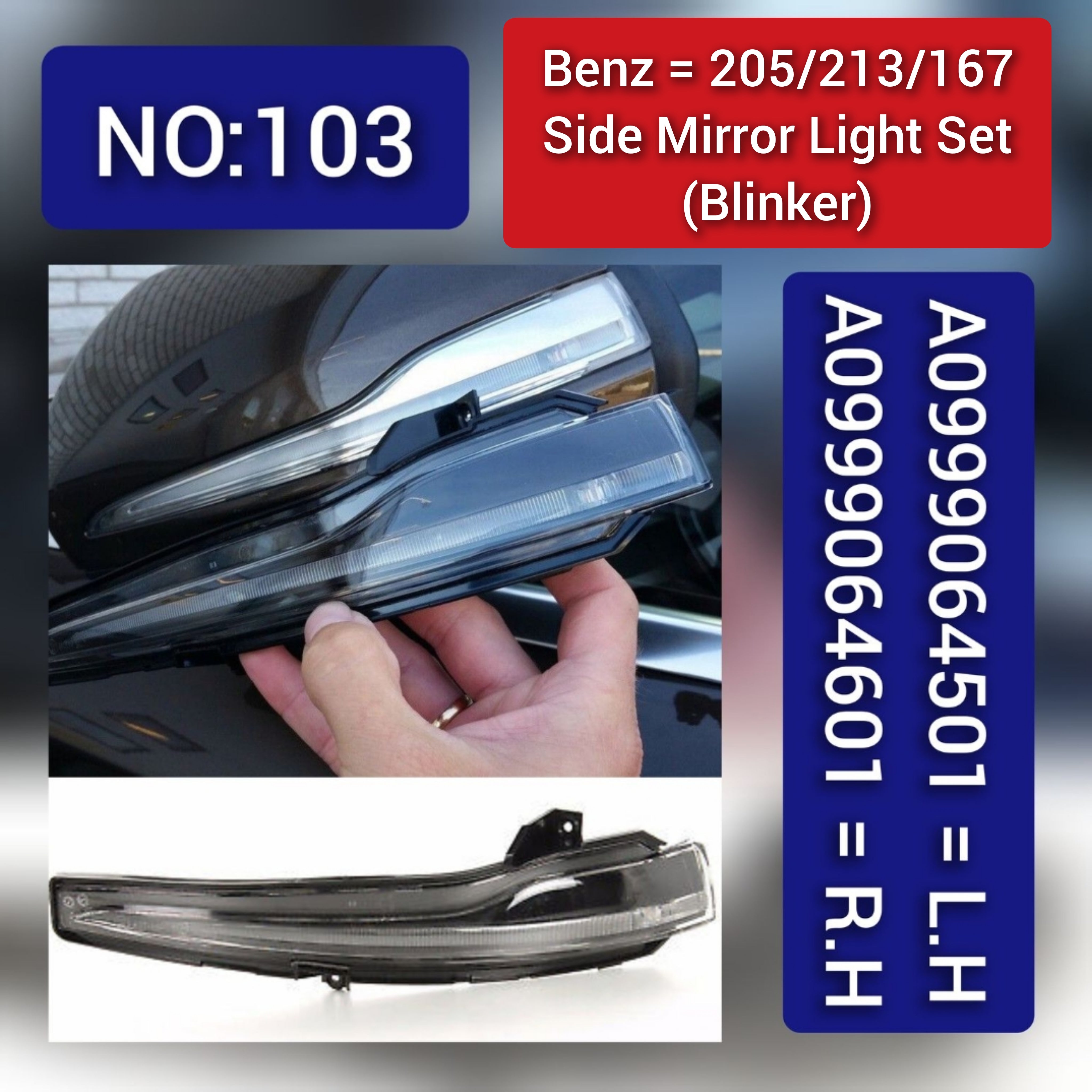 These Dynamic Turn Signal LED Mirror Lights, left (A0999064501) and right (A0999064601), are designed for MERCEDES-BENZ C-CLASS W205, E-CLASS W213, and GLE W167 models. They offer precise fitment and enhanced visibility with bright LED signals, improving safety during lane changes and turns. Built to OEM standards, these mirror lights combine durability with a sleek, modern appearance, ensuring reliable performance and seamless integration with your vehicle’s exterior.