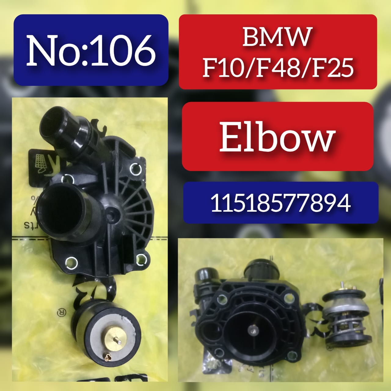 This Elbow 11518577894 is designed for compatibility with BMW 5 Series (F10), X1 (F48), and X3 (F25) models. Engineered to meet OEM standards, it ensures precise fitment and reliable performance within the vehicle's system. Ideal for maintaining optimal fluid flow and system integrity, this component supports the durability and functionality expected in BMW's engineering. Tag No.106 helps in quick identification and replacement.