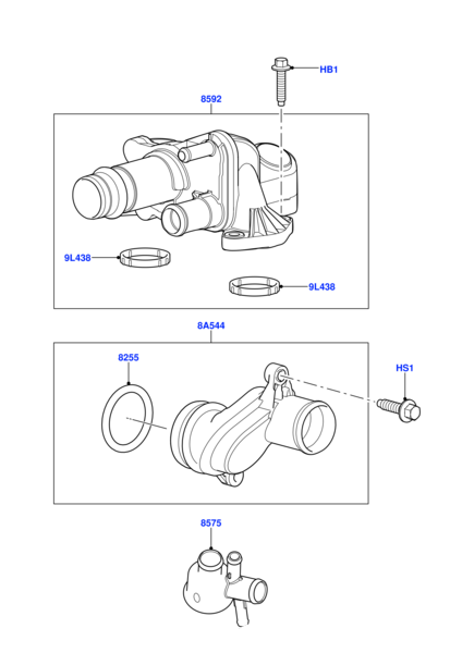 Elbow (Thermostat) LR073372 4H2Q8592BF For JAGUAR XF I X250, XJ X351 & LAND ROVER RANGE ROVER SPORT I L320
