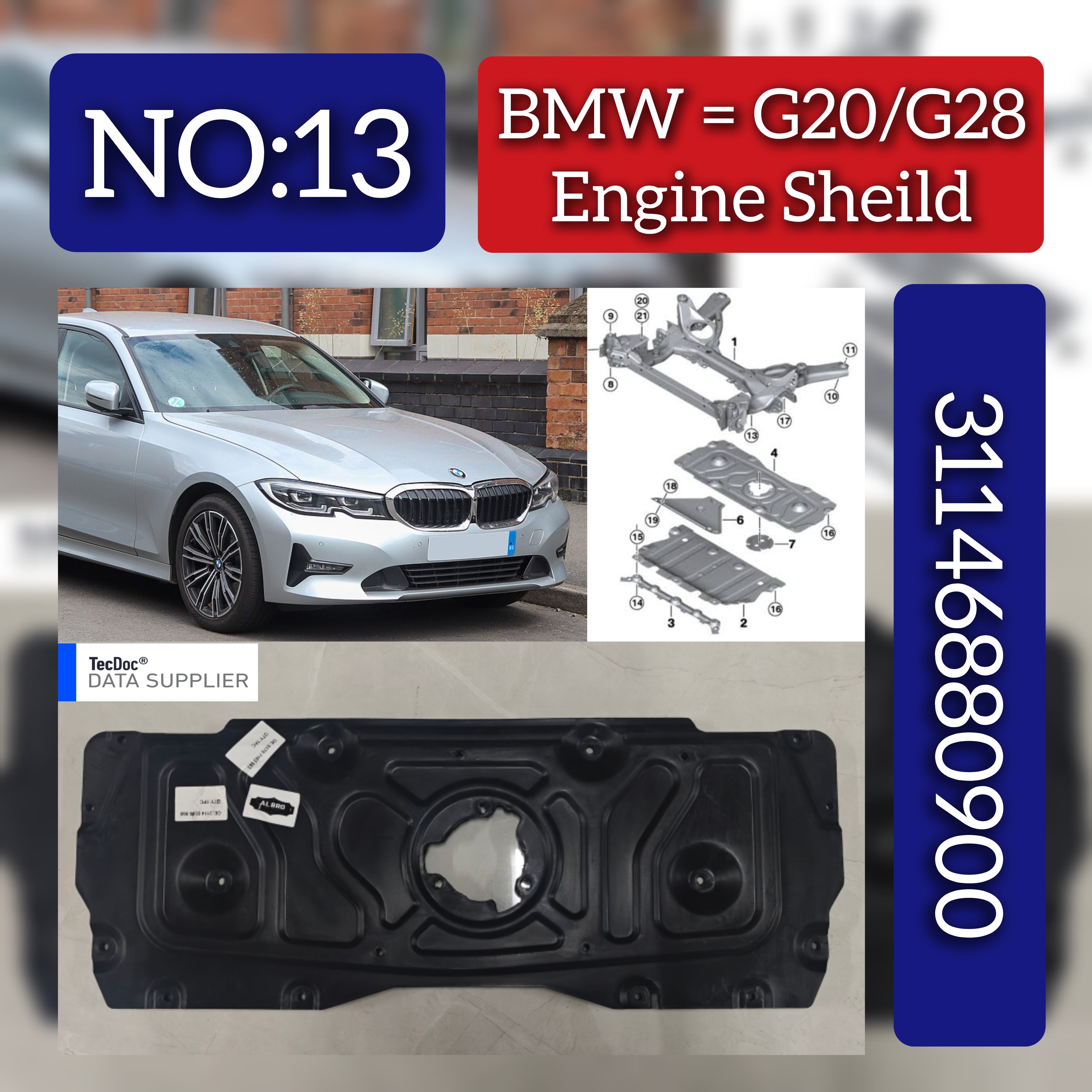 Engine Shield 31146880900 is designed specifically for BMW 3-Series G20 and G28 models, ensuring precise fit and reliable protection. This component safeguards your engine from debris and potential damage, helping maintain optimal performance and longevity. Crafted to meet OEM standards, it offers durability and peace of mind for your vehicle’s critical components. Ideal for professional maintenance or quality upgrades.