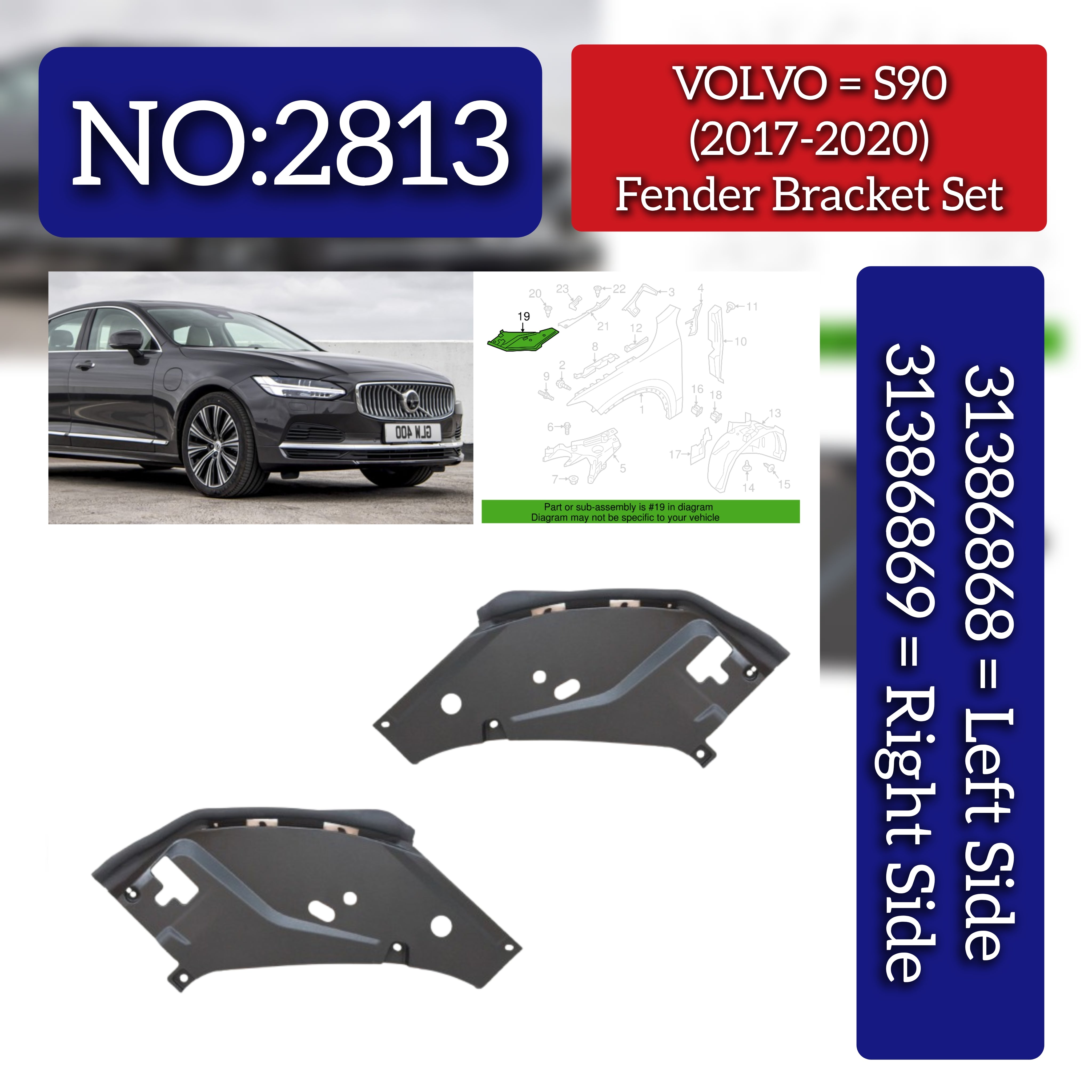 The Fender Bracket Set (Left 31386868 & Right 31386869) is designed for precise fitment with VOLVO S90 models from 2017 to 2020. Engineered to secure fenders effectively, this set ensures alignment integrity and structural stability, contributing to the vehicle’s overall safety and appearance. Manufactured to meet OEM standards, these brackets provide reliable support and durability necessary for maintaining the factory bodywork quality. Ideal for professional repairs or restoration projects requiring exact compatibility and performance.