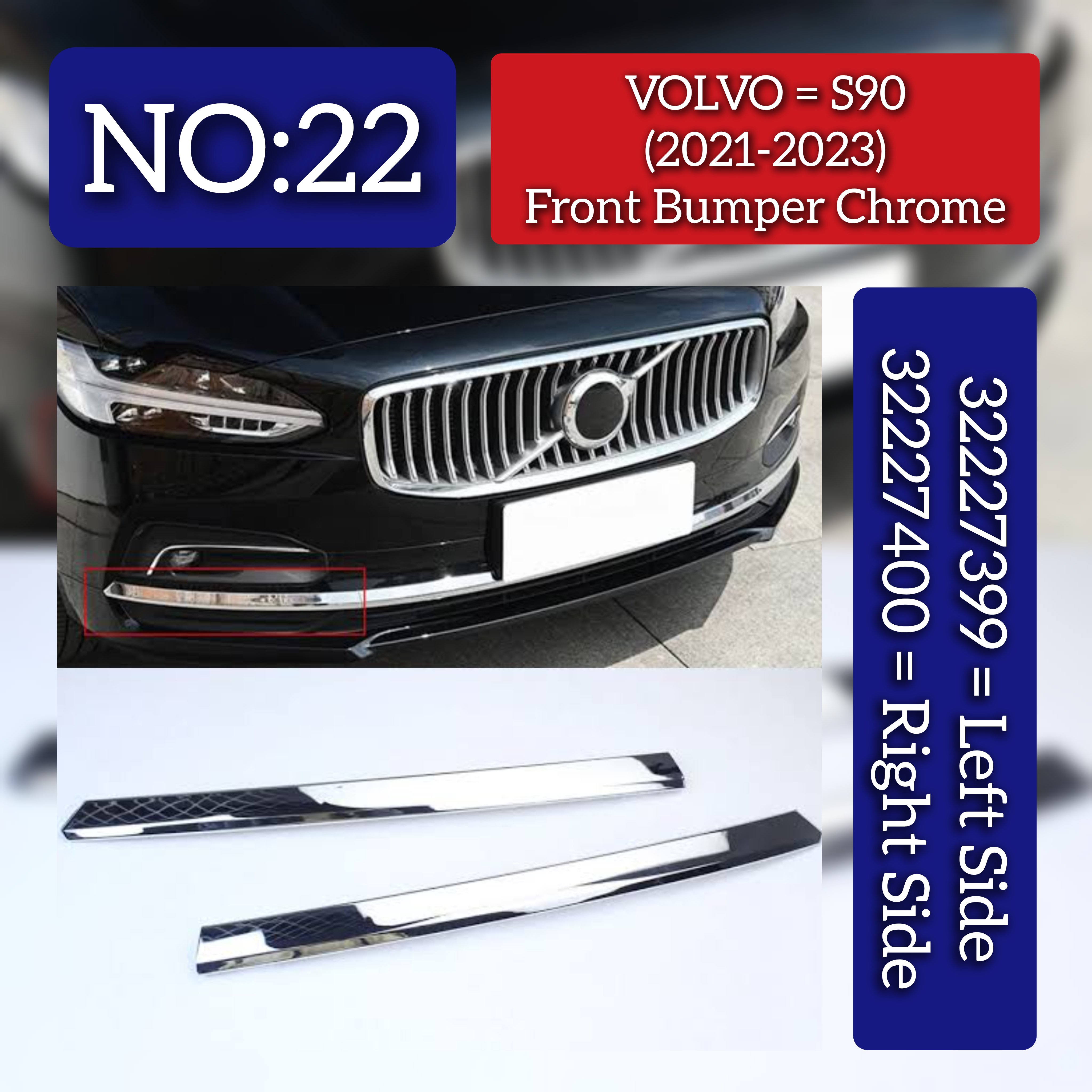 Upgrade your Volvo S90 (2021-2023) with these high-quality chrome front bumpers, designed specifically for the left (32227399) and right (32227400) sides. Engineered for precise fit and durability, they enhance your vehicle’s appearance while providing reliable protection. These bumpers offer seamless integration with your car’s design, ensuring both style and function are maintained to expert standards.