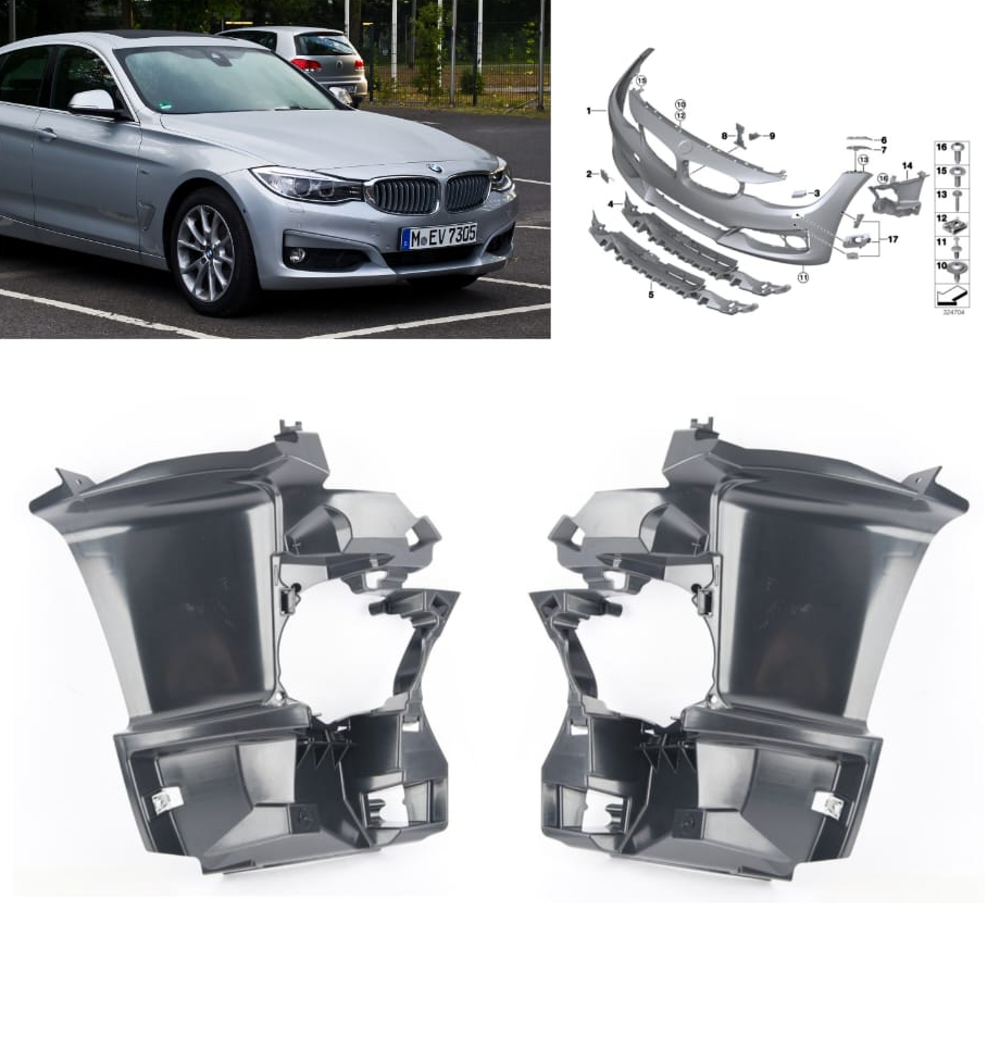 Precision-engineered fog lamp brackets designed specifically for BMW 3 Series GT F34 models (2014-2019). This matched pair includes both left (51117293799) and right (51117293800) brackets, ensuring perfect fitment and symmetrical installation. OEM-quality construction guarantees durability and reliable performance in all weather conditions. Direct replacement parts eliminate compatibility concerns and restore your vehicle's original lighting configuration. Essential components for maintaining proper fog lamp alignment and structural integrity. Tag reference: 1562.