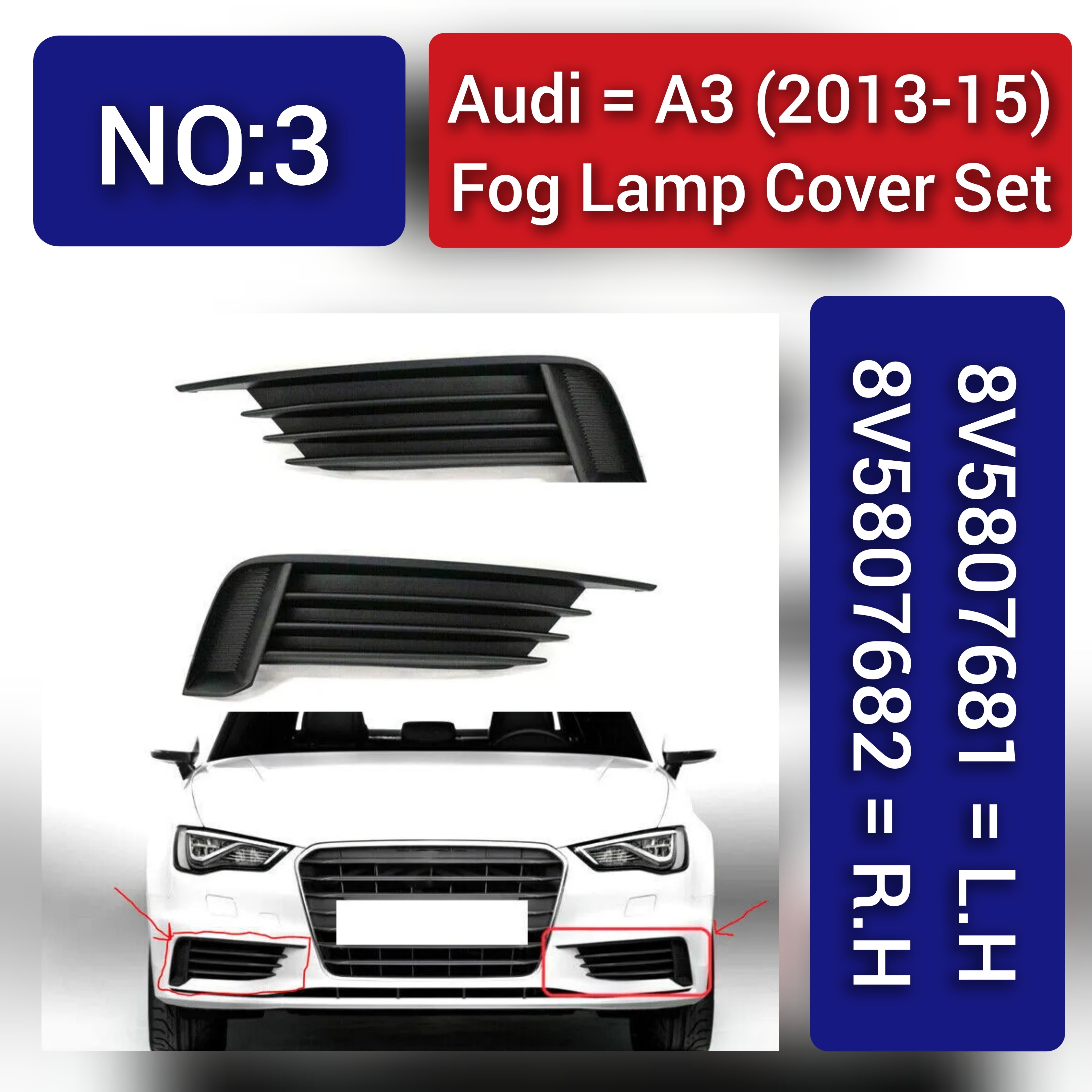 Fog Lamp Cover Compatible With AUDI A3 2013-2015 Fog Lamp Cover Left 8V5807681 & Right 8V5807682